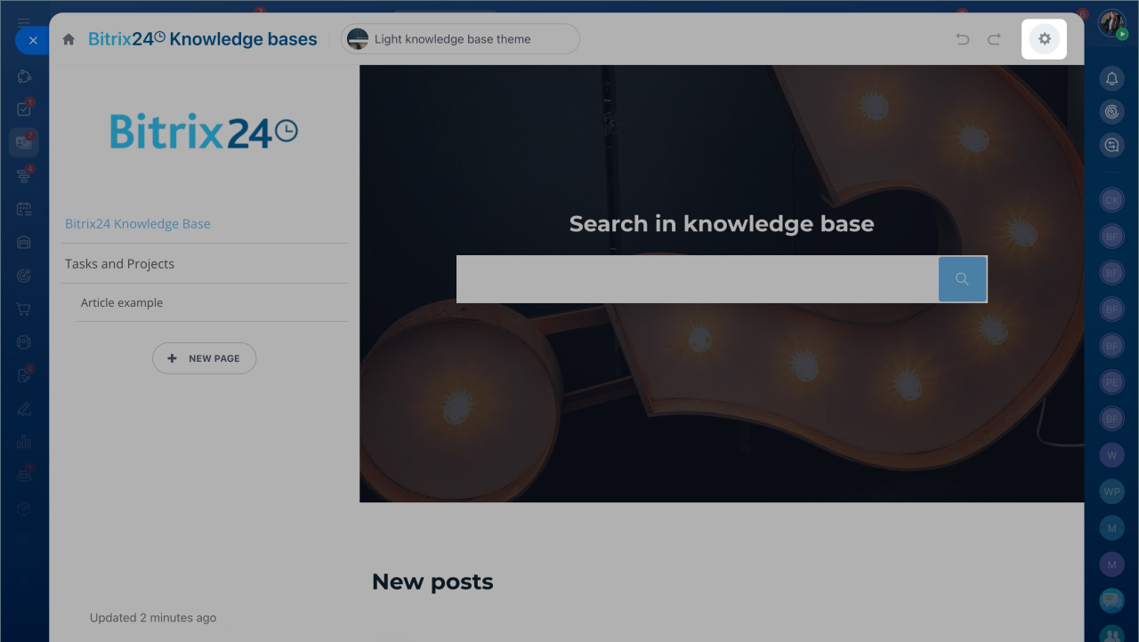 - You can edit the knowledge base sections in the menu by clicking the settings icon.
