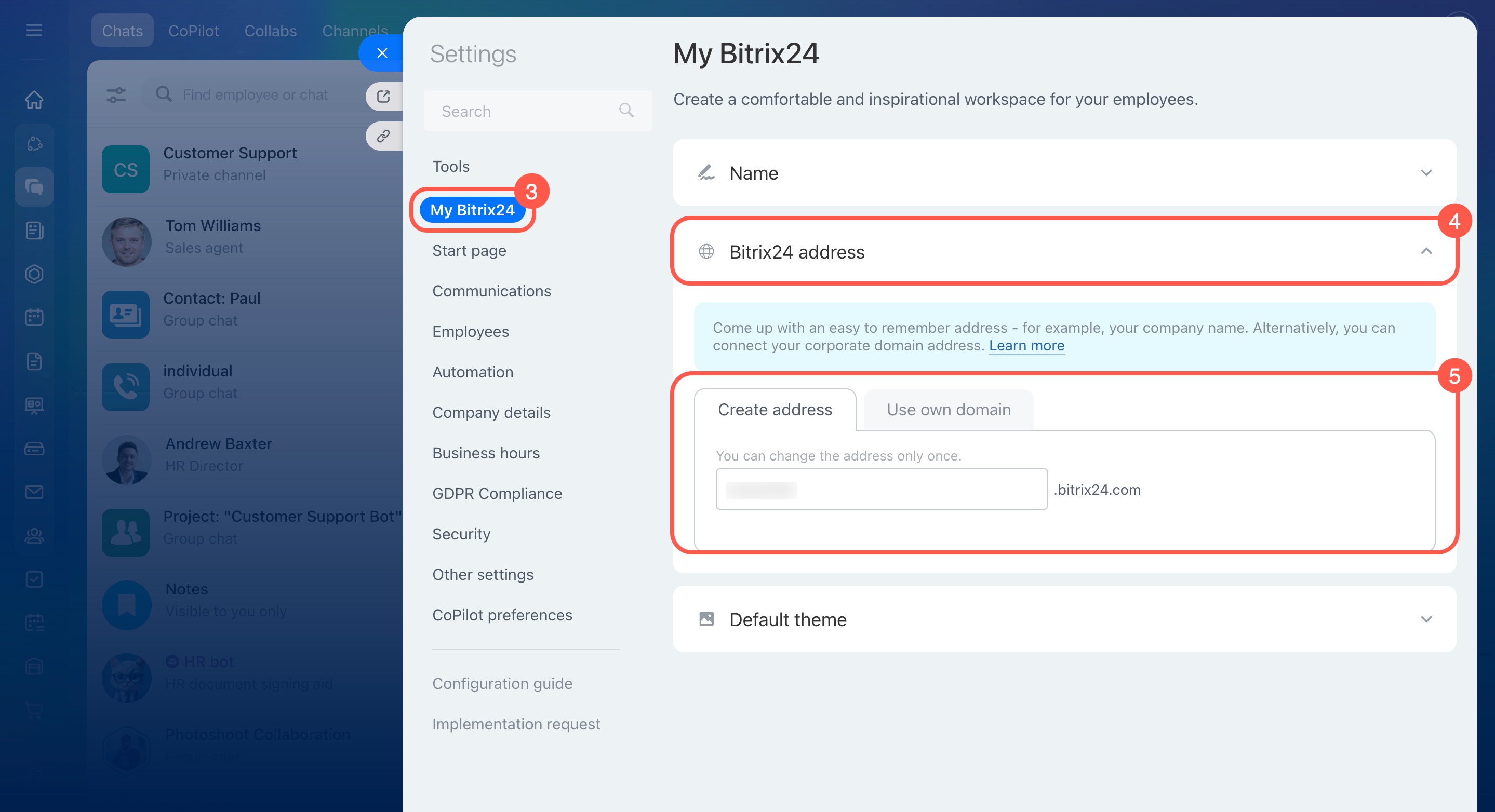 . You can change this address or connect your own domain. Only Bitrix24 administrators can do this.
