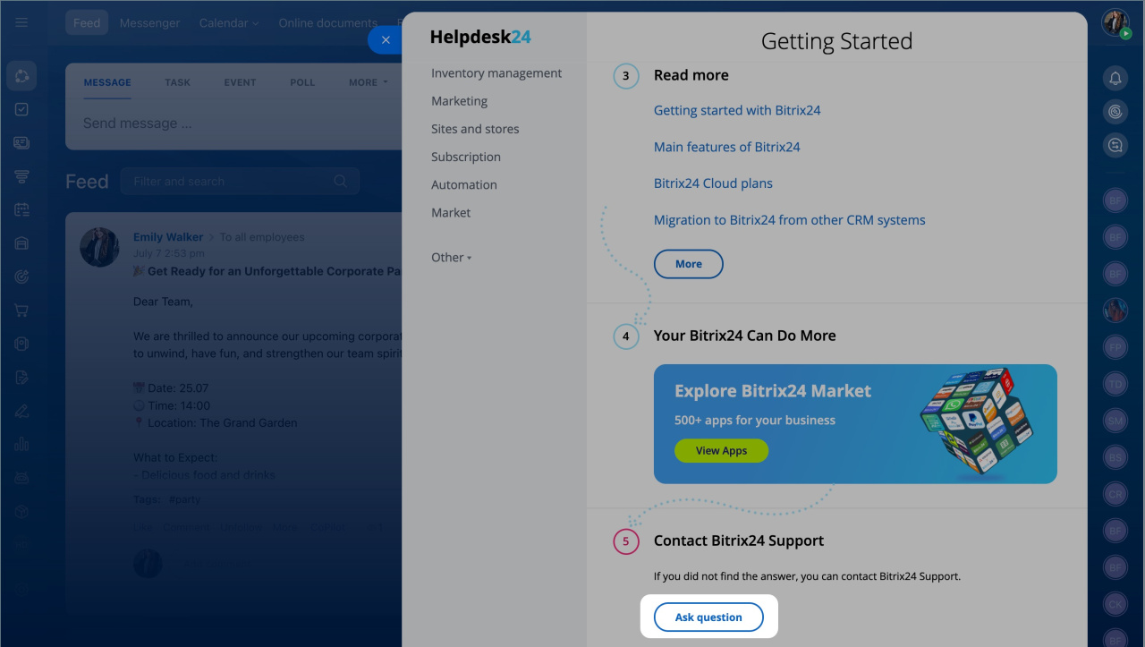 You can contact support via chat from your computer or the Bitrix24 mobile app.