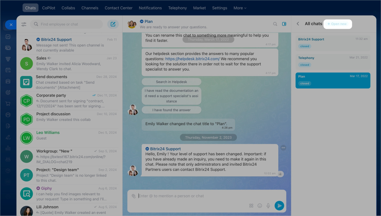 If you have questions about using Bitrix24, you can contact the Support team and get assistance in the chat. This article provides answers to frequently asked questions about support.