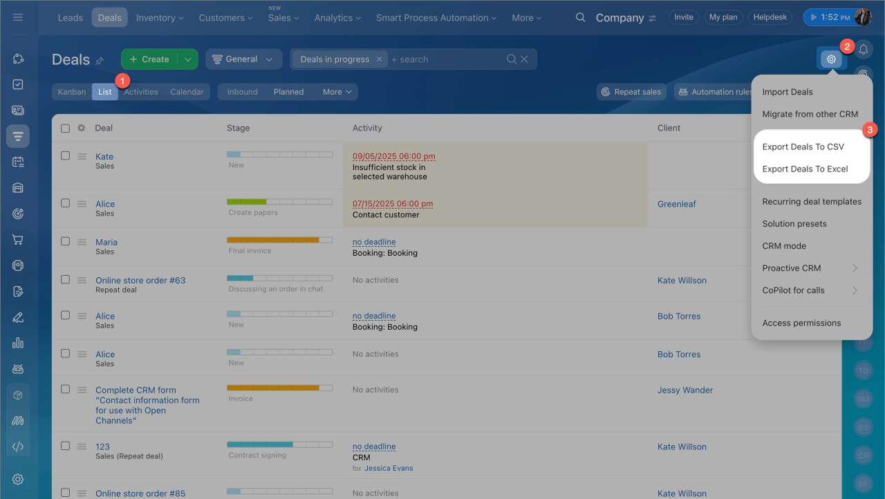 Export allows you to transfer information from Bitrix24 to another system, make a backup copy of data or analyze data from CRM in third-party programs.