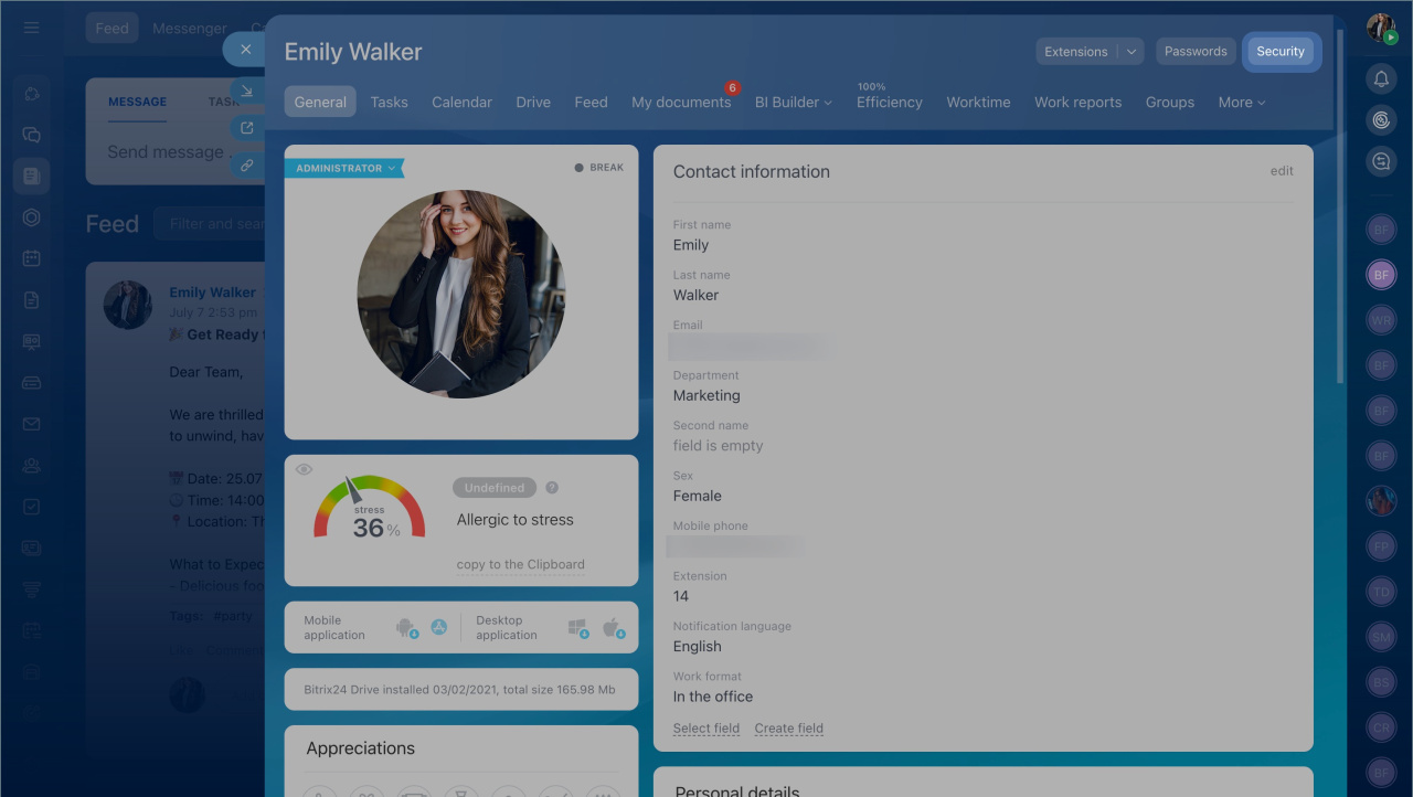 Communicate and collaborate in a safe, secure environment with Bitrix24 Enterprise. All the data you create during the working process including messages in chats, video call recordings, files and documents, and other content is stored securely inside your Bitrix24 account.