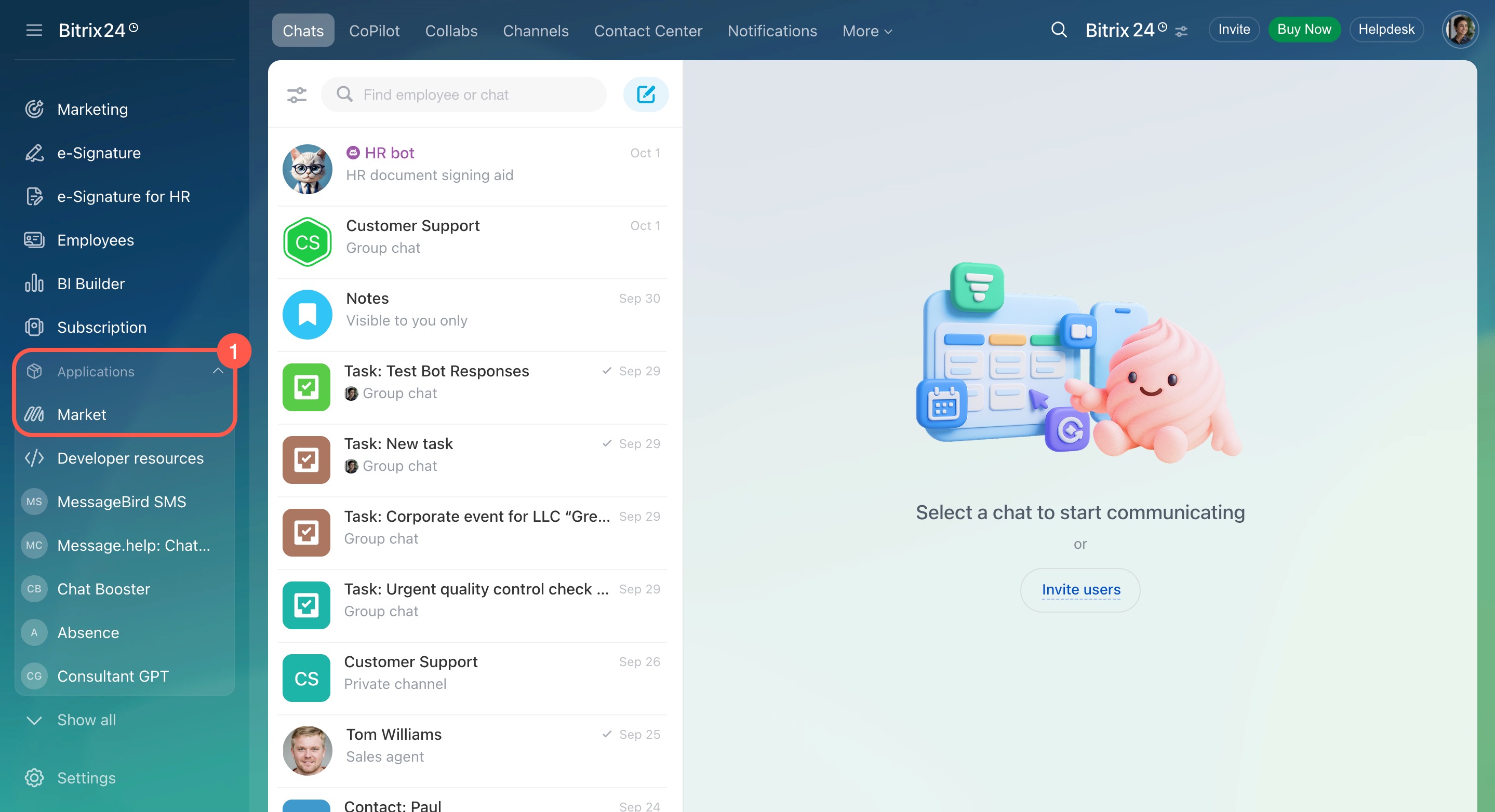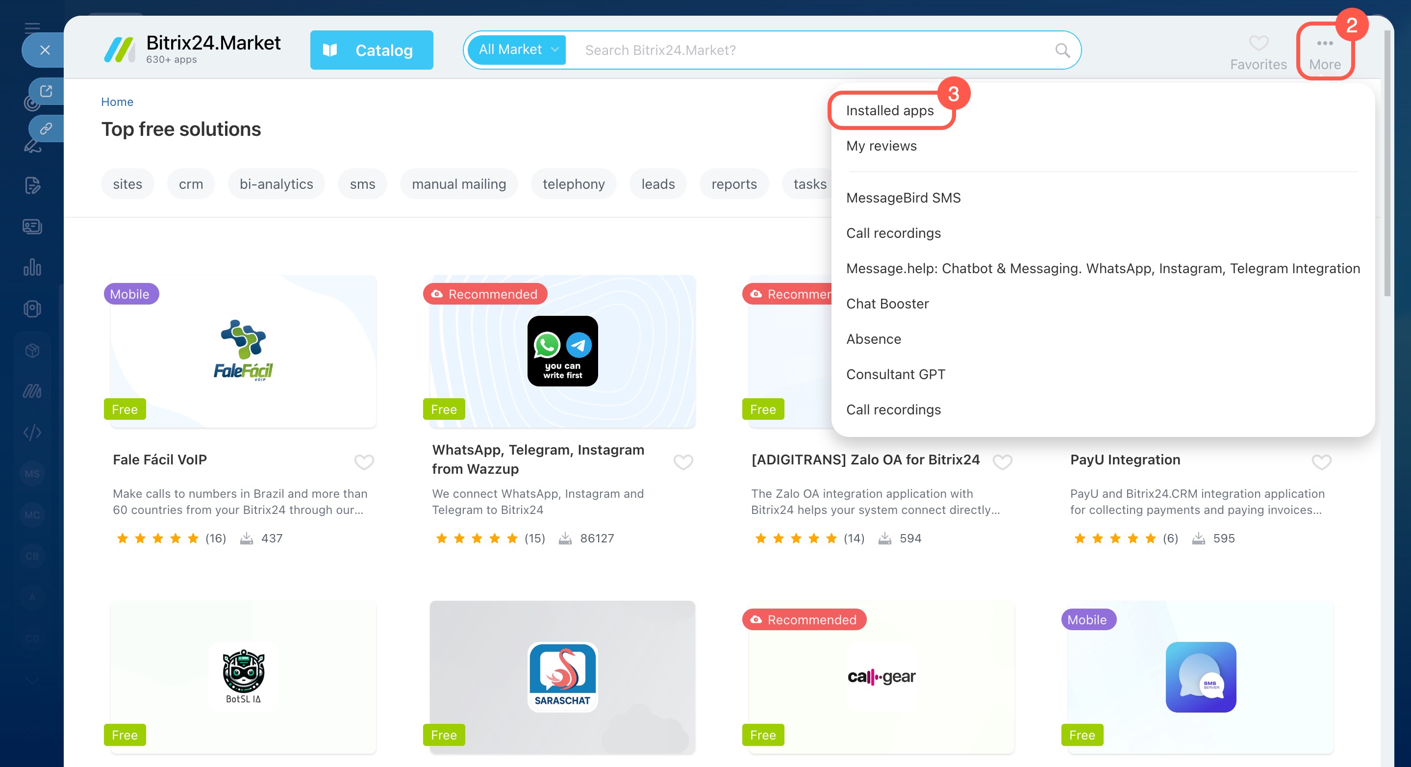 Find and install Bitrix24 Market applications