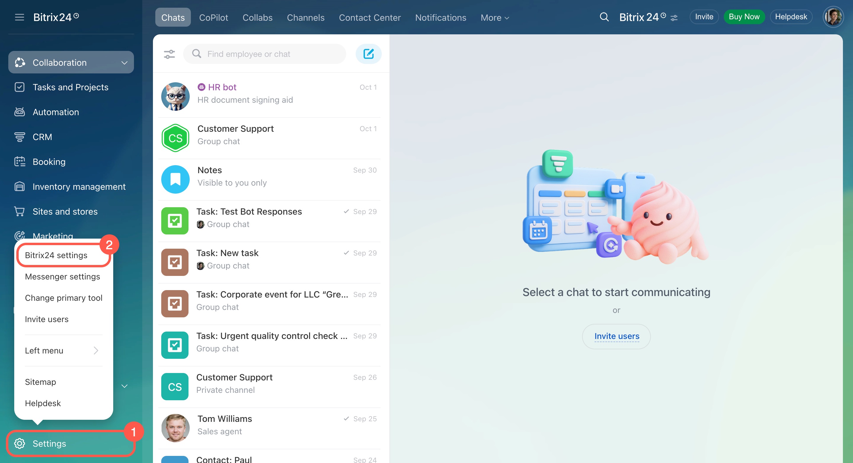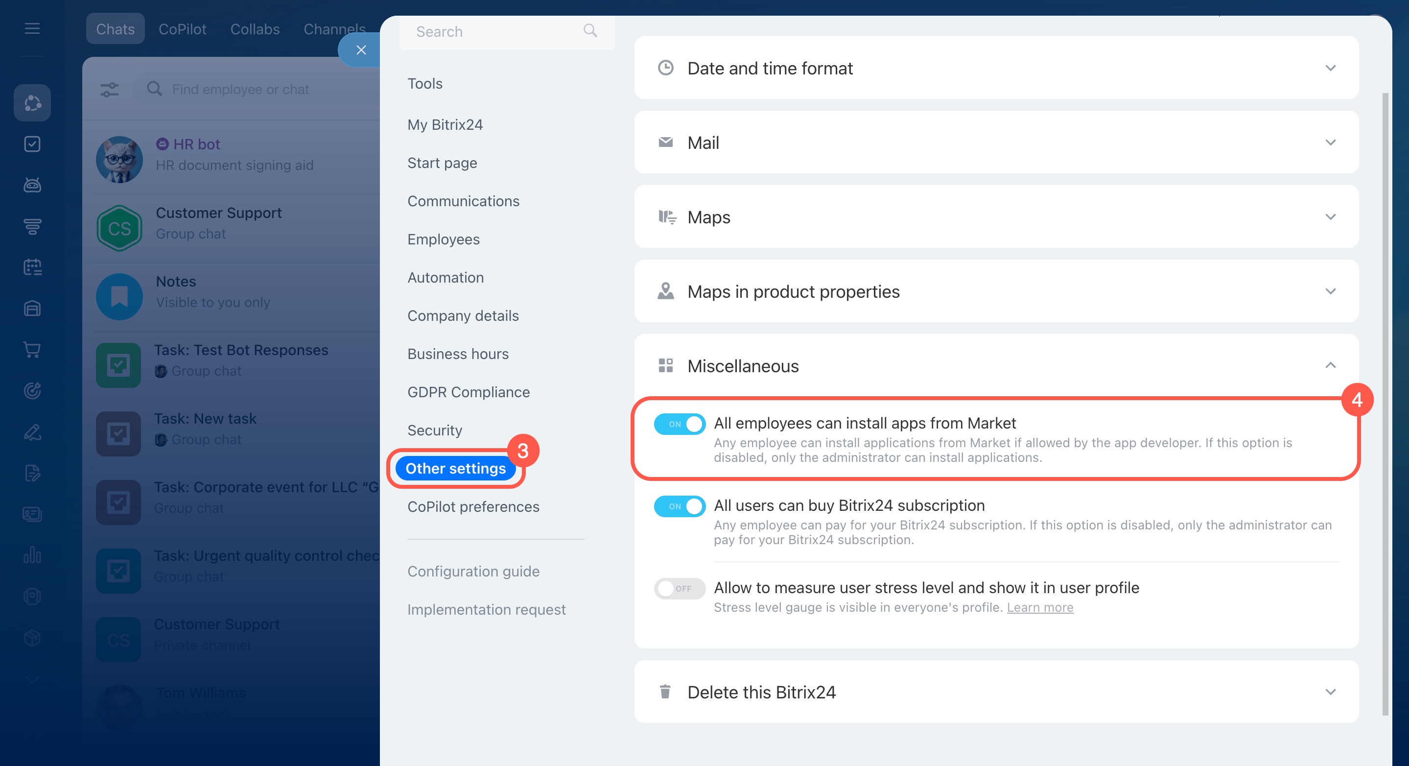 - Select Bitrix24 settings.