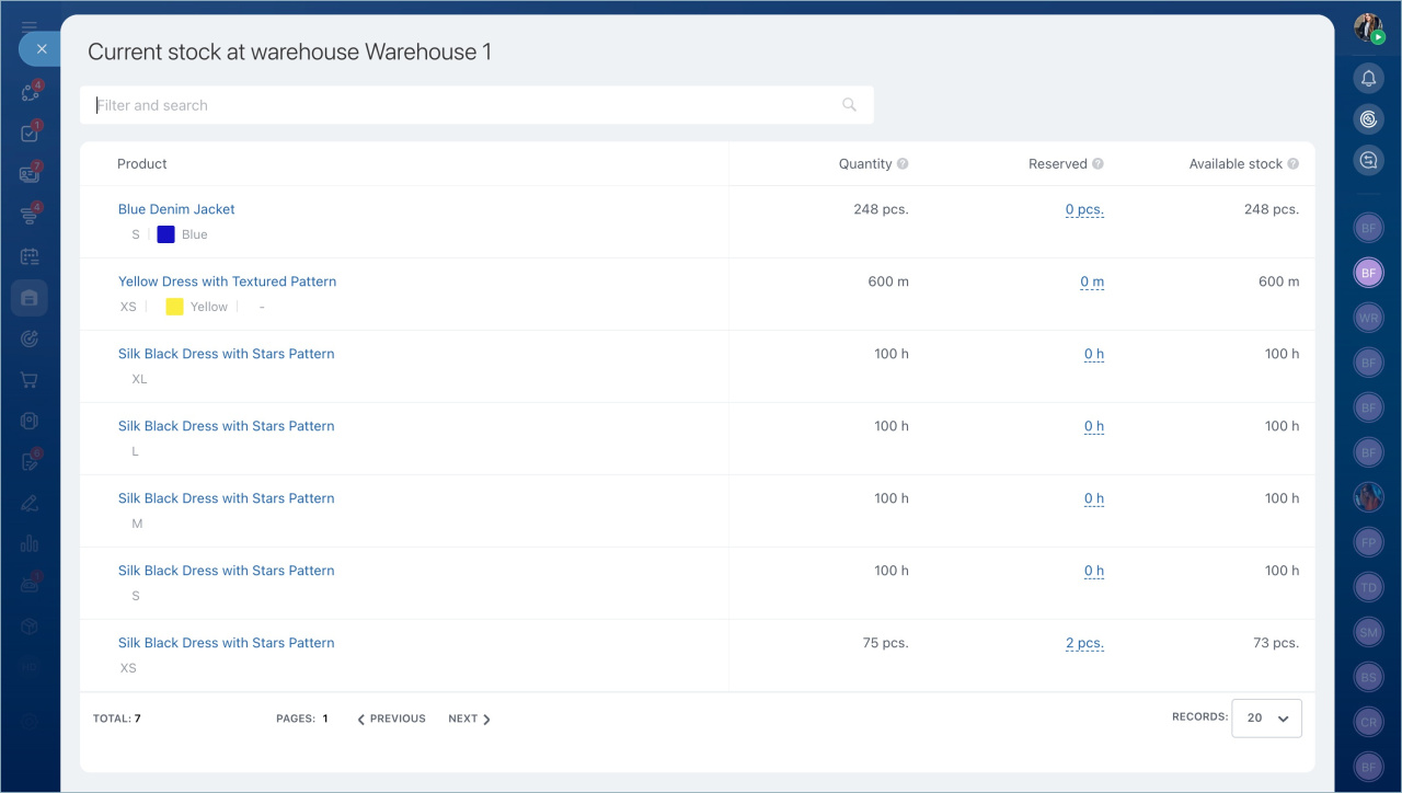 - Reserved — indicates how much stock is reserved by managers in deals.