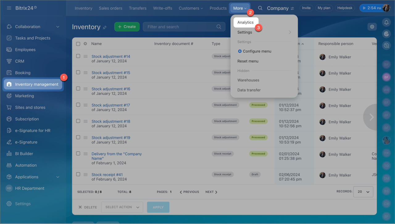 - Different demand. For example, a product sells faster at the online store warehouse, while sales are slower at the main warehouse, leading to stock accumulation. You can analyze sales trends and transfer some stock between warehouses.