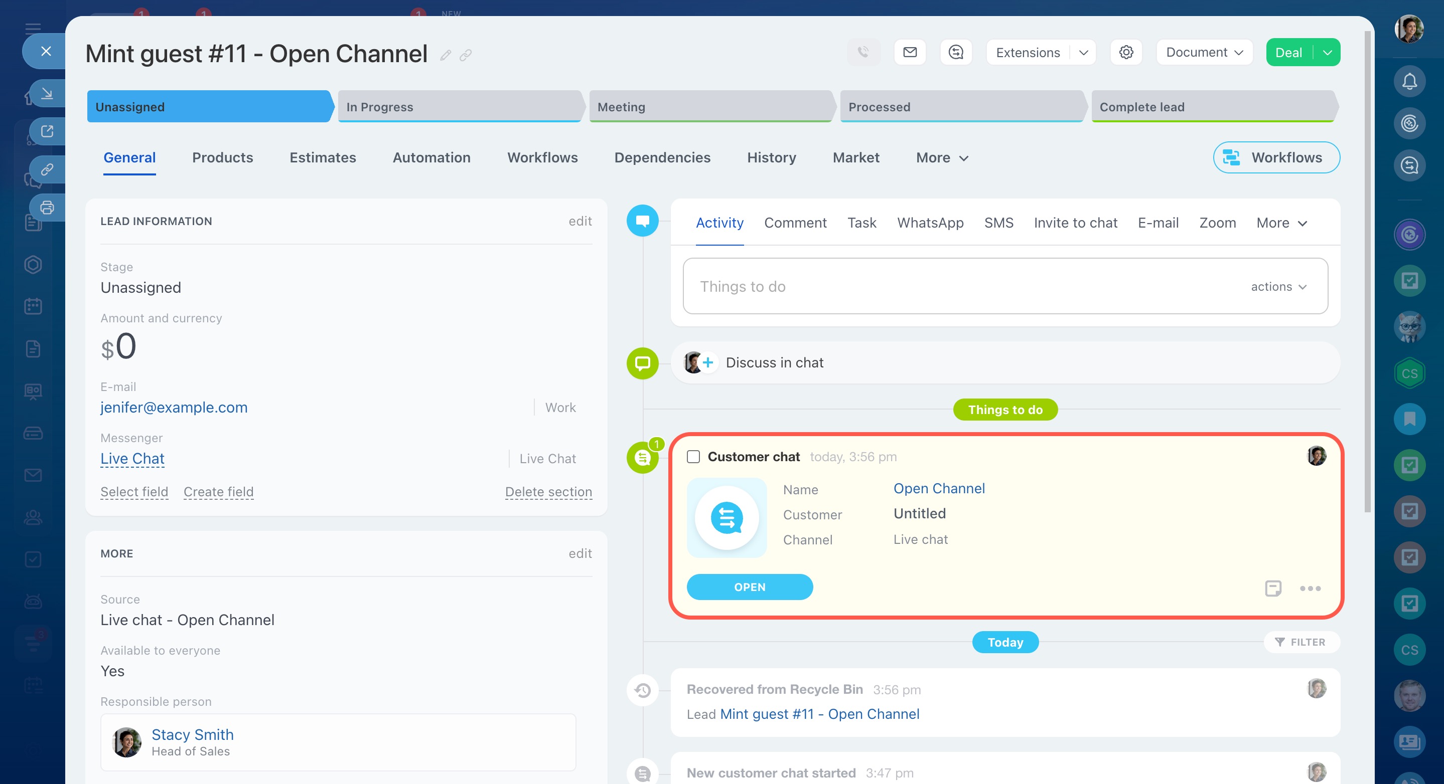 - User: A visitor profile without access to your Bitrix24, created automatically to link Open Channel chats with the CRM.
