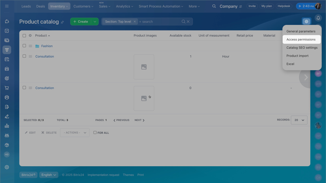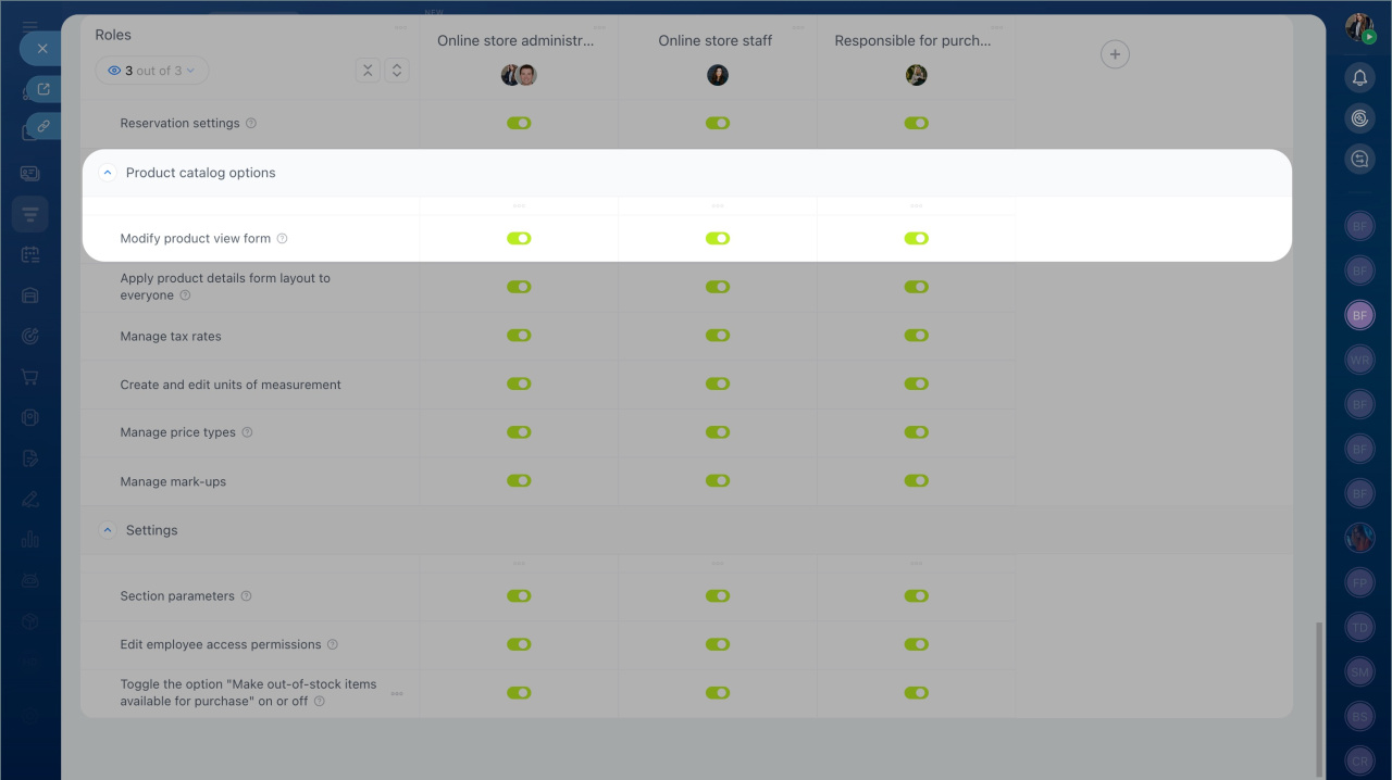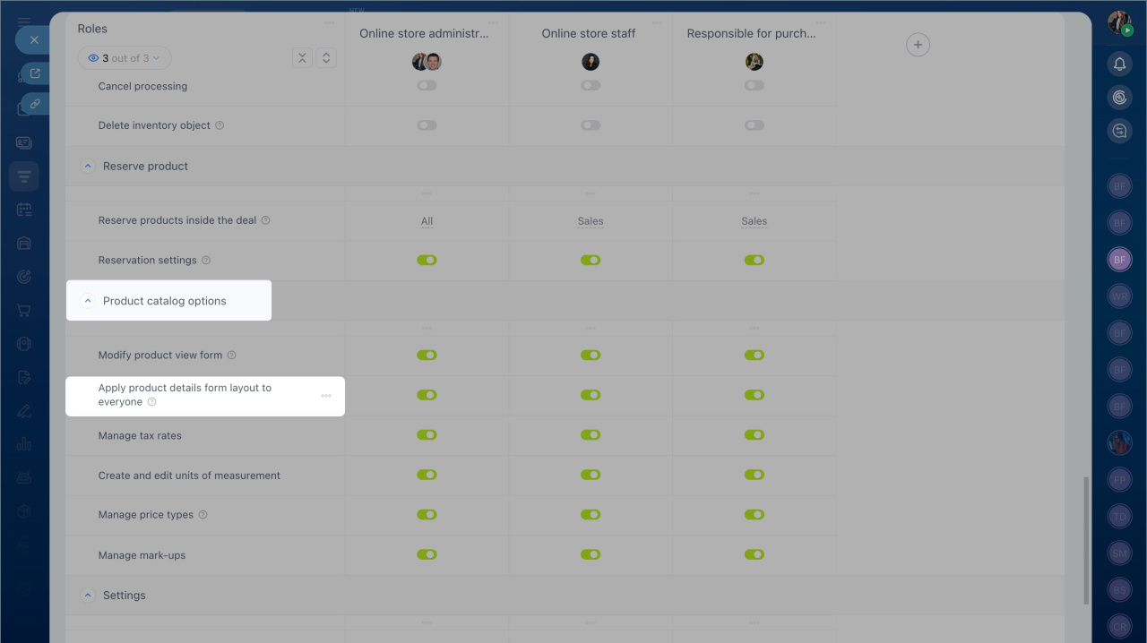 You can also grant the Apply product details form layout to everyone access permission to the head of the department to set up the necessary fields. Other employees could not accidentally delete them or change the form.