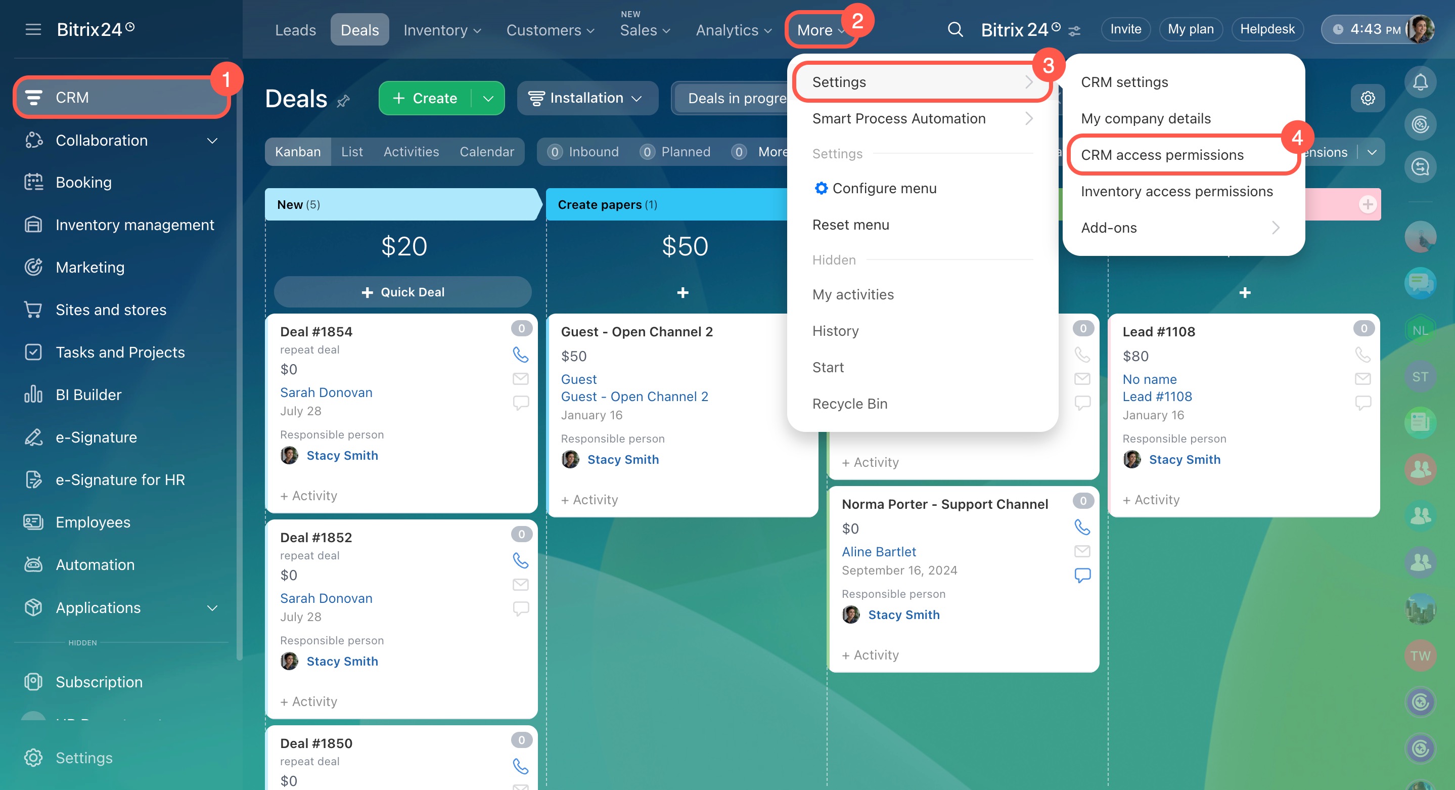 - Select CRM access permissions.