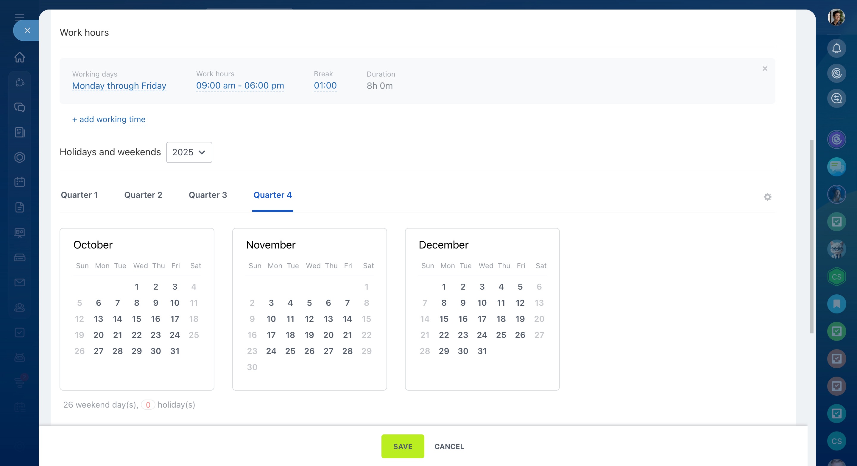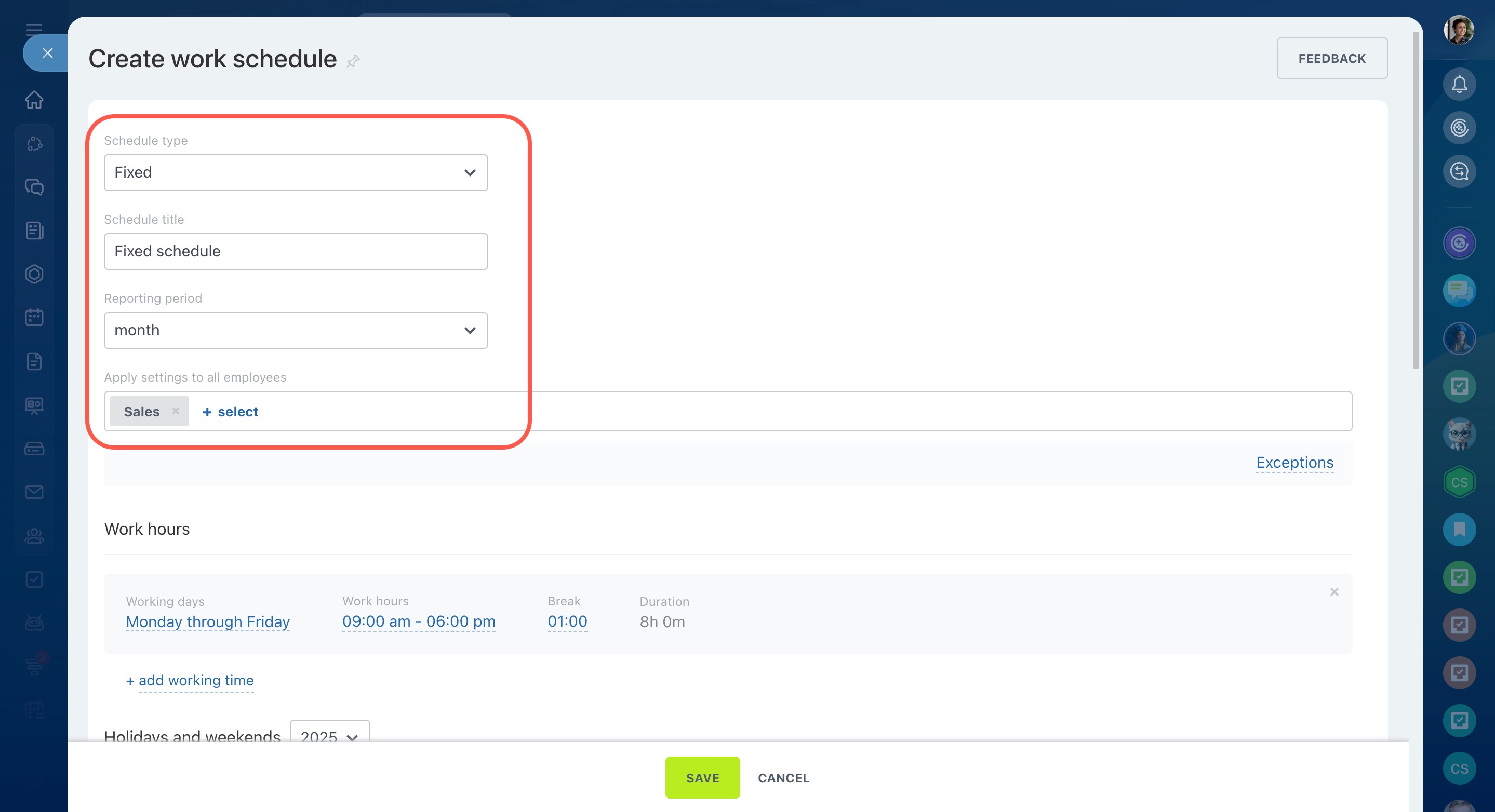 Tracking employee work hours is essential for many companies. With Bitrix24, you can easily create work schedules for your team and manage their working hours using simple, built-in tools.