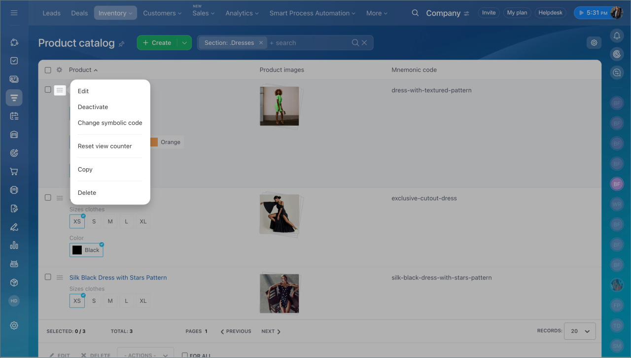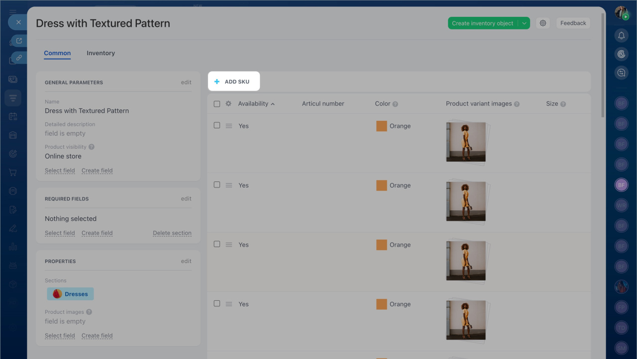 You can add or remove product variants, add new properties like color, or size at any time. In Bitrix24, products are created with variants by default, and each variant has its own unique identifier.