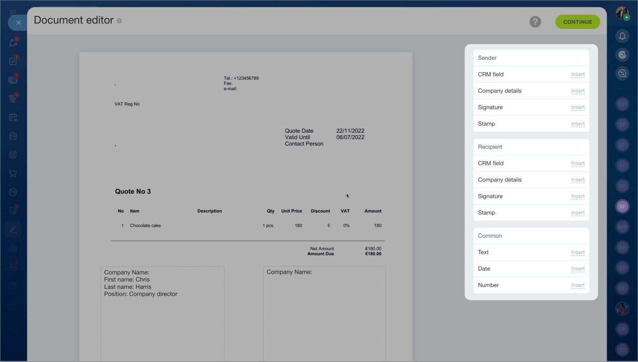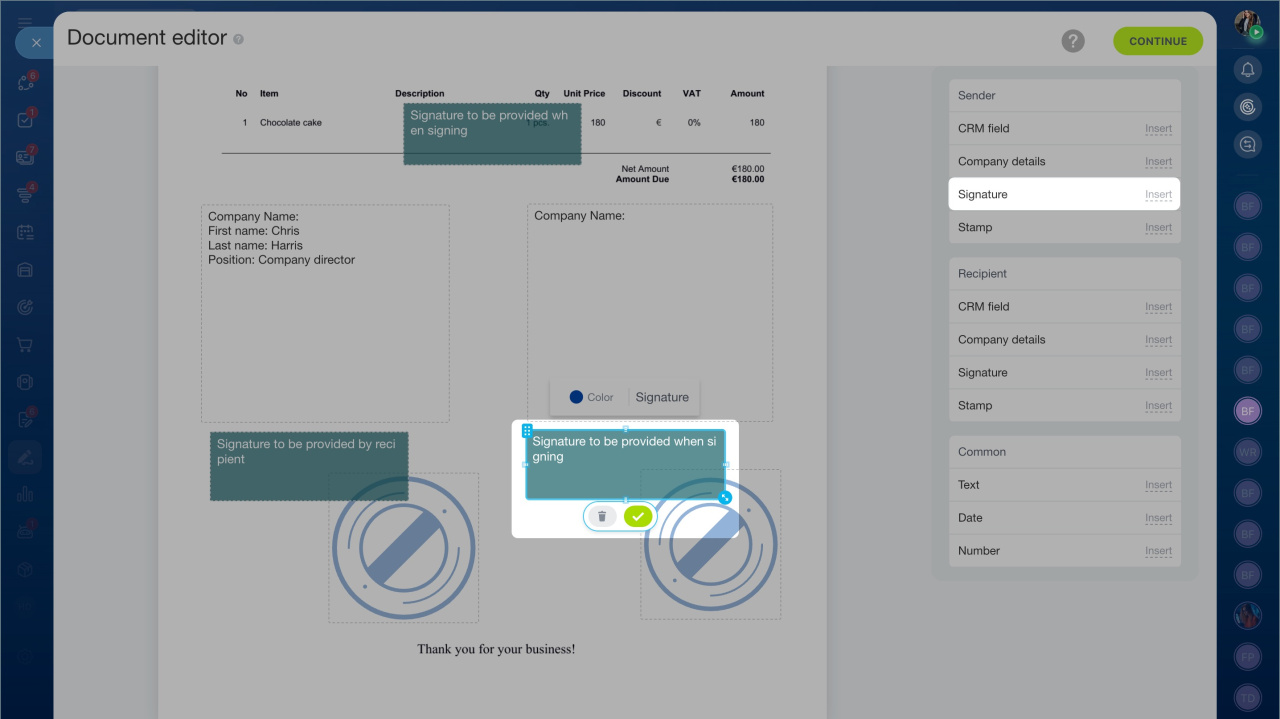 Use the Sender, Recipient, and Common sections to add additional details to the document, like a stamp or signature.