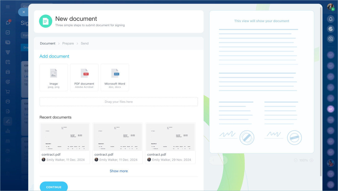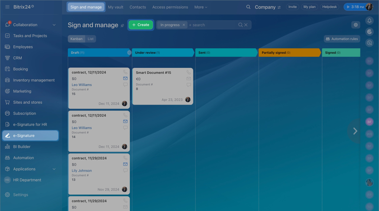 - With Bitrix24 e-Signature, you can sign contracts and other documents with recipients electronically.
