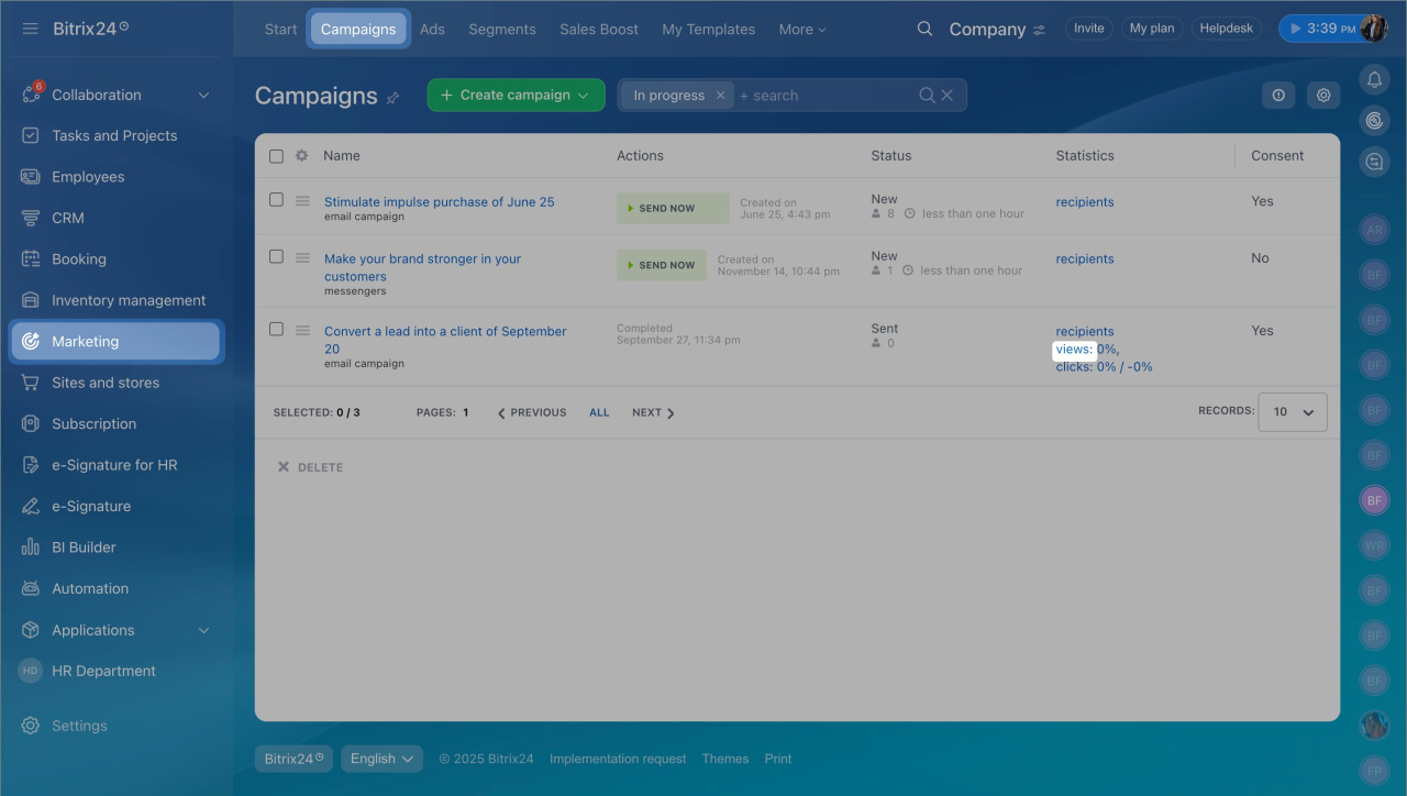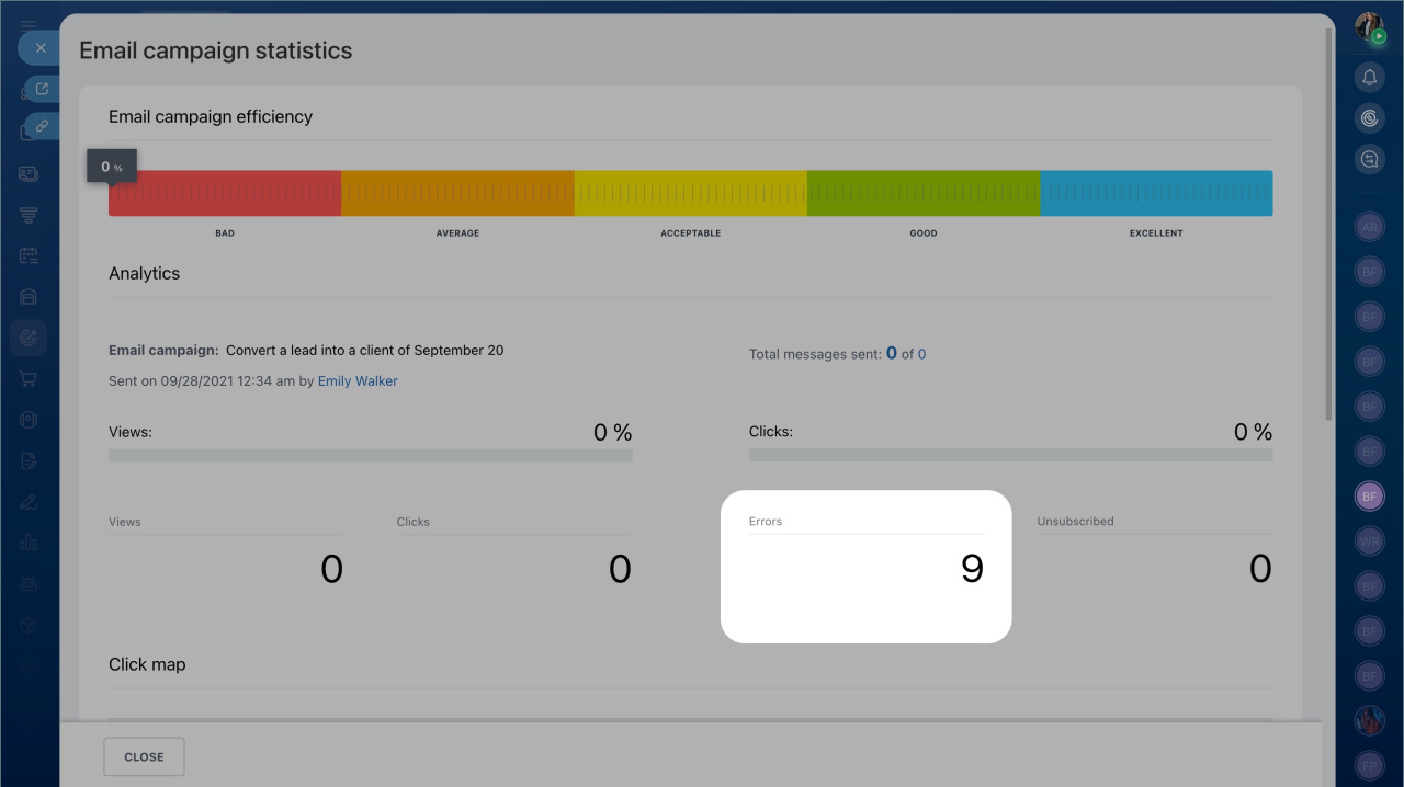 - Find emails with errors. Go to the Marketing section > Campaigns tab. Click on views under campaign statistics to see emails marked with the Has errors status. Make sure this status is not because of a mail server error.