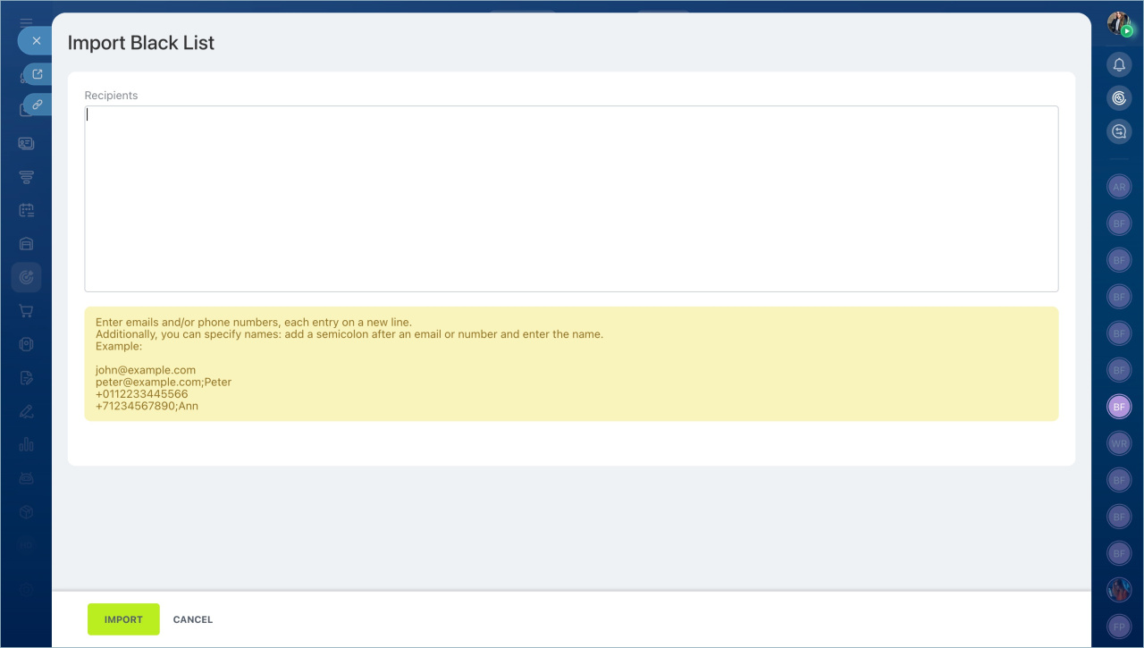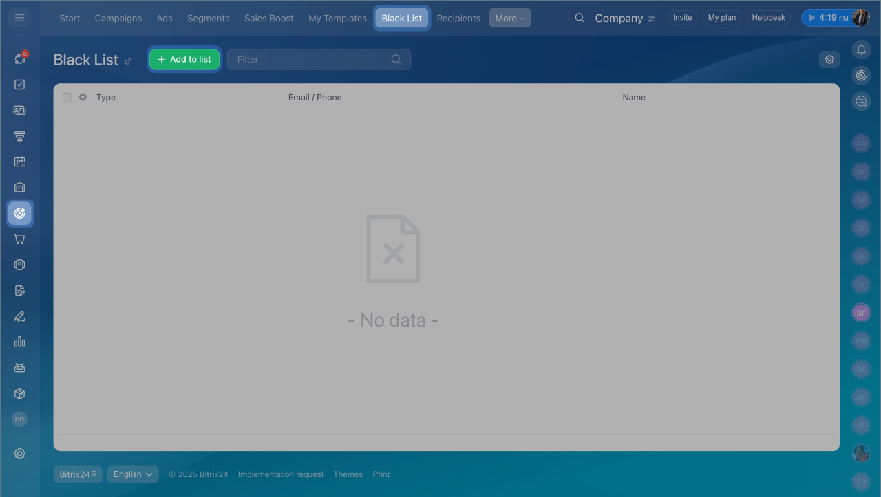 - To prevent sending emails to these incorrect addresses again, you have two options: add email addresses to the black list or create an exclusion segment.