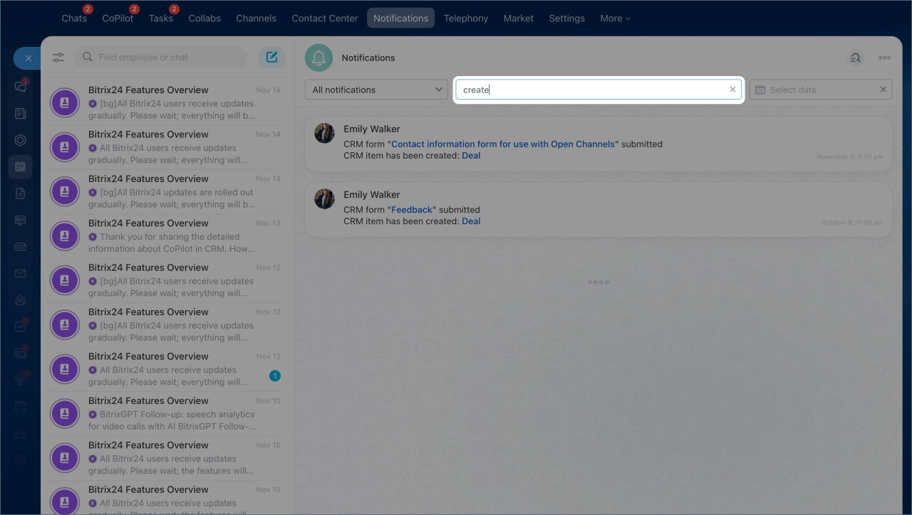 - Notifications in Bitrix24 help you stay on top of important events like new tasks, comments, meetings, or CRM updates.