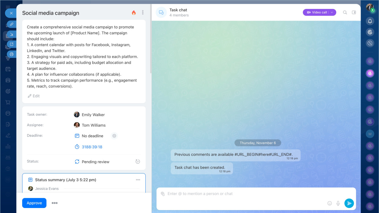 Tasks are no longer lost in chats—everything you say in voice messages is captured in tasks, helping the team stay on track.