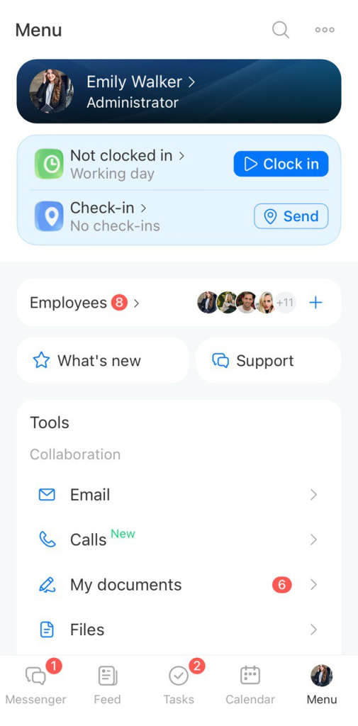- Mobile app — new interface, faster messenger, and updated employee profile. The app is now simpler and more enjoyable to use — everything you need is at your fingertips, wherever you are.
