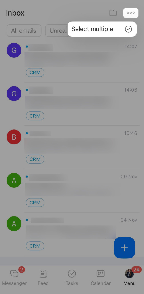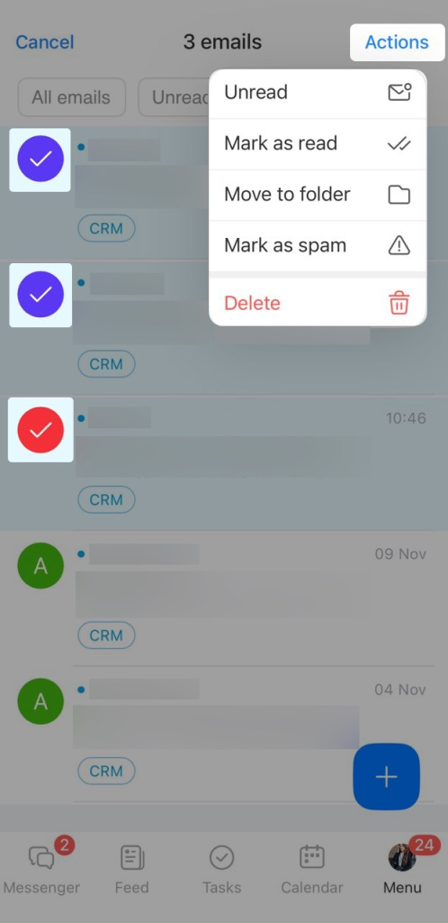 After connecting your email in the Bitrix24 mobile app, you can perform all basic actions with emails.