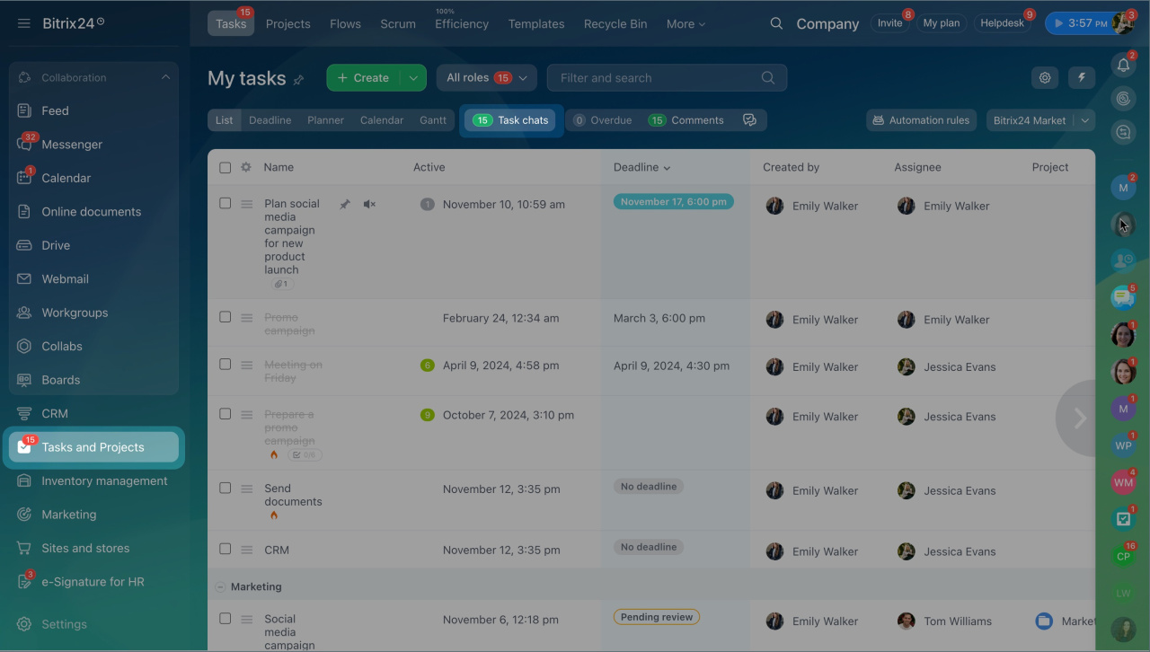 New tasks are not just an update but a new way of working. Now, everything needed for completion is gathered in one place. The task chat has become the task management hub. Here, the team discusses details, makes decisions, and tracks changes in real time. Work progresses faster, and Bitrix24 helps bring tasks to completion.