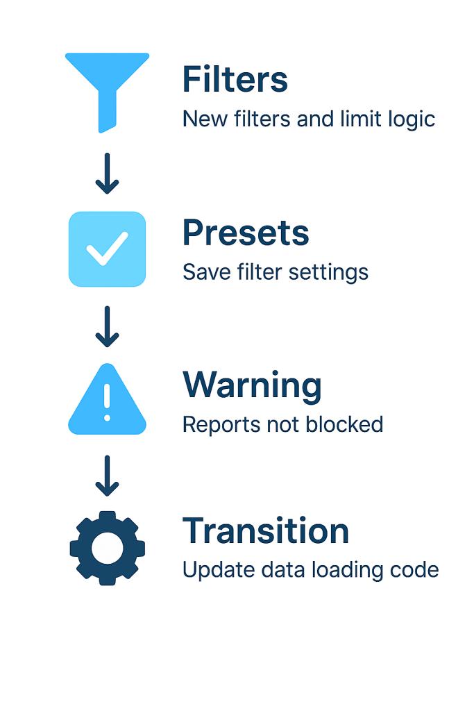 - When limits are exceeded, reports are no longer blocked: a warning appears, and the request can be adjusted.