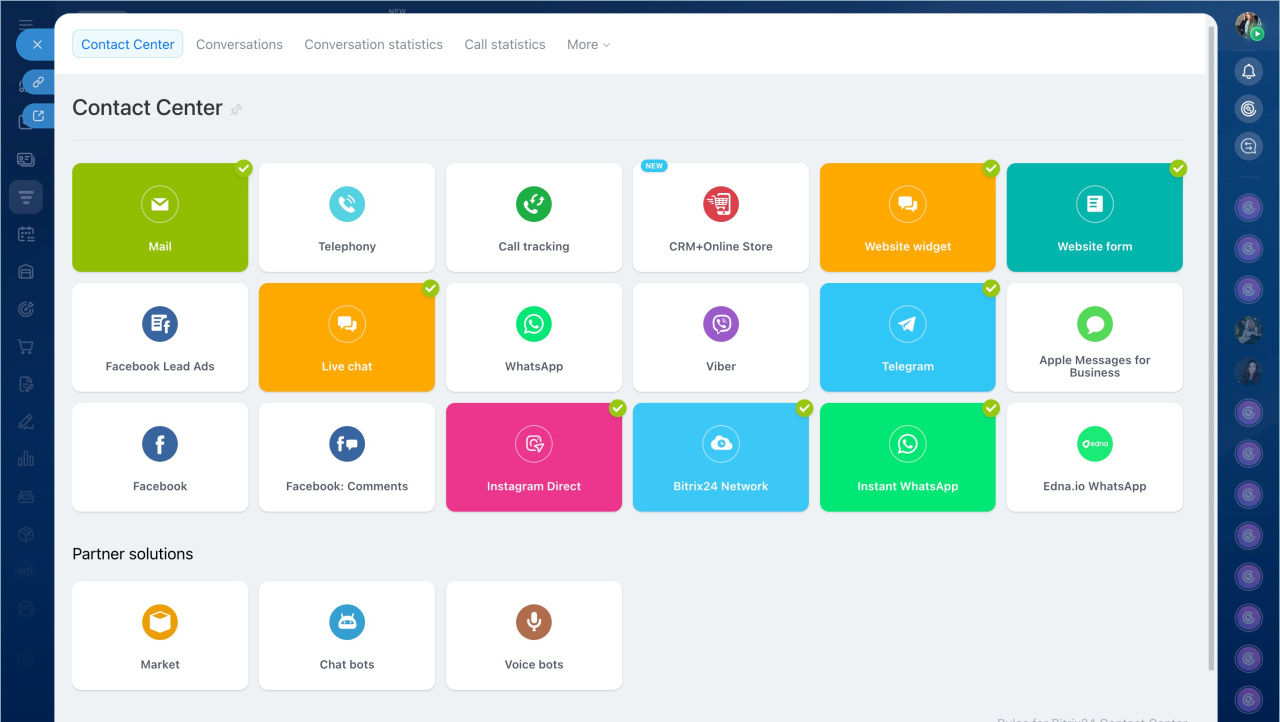 These articles answer questions about connecting messengers, social networks, and telephony to Bitrix24. Learn how to delete an open channel, troubleshoot issues with calls from rented numbers, and solve other common problems.