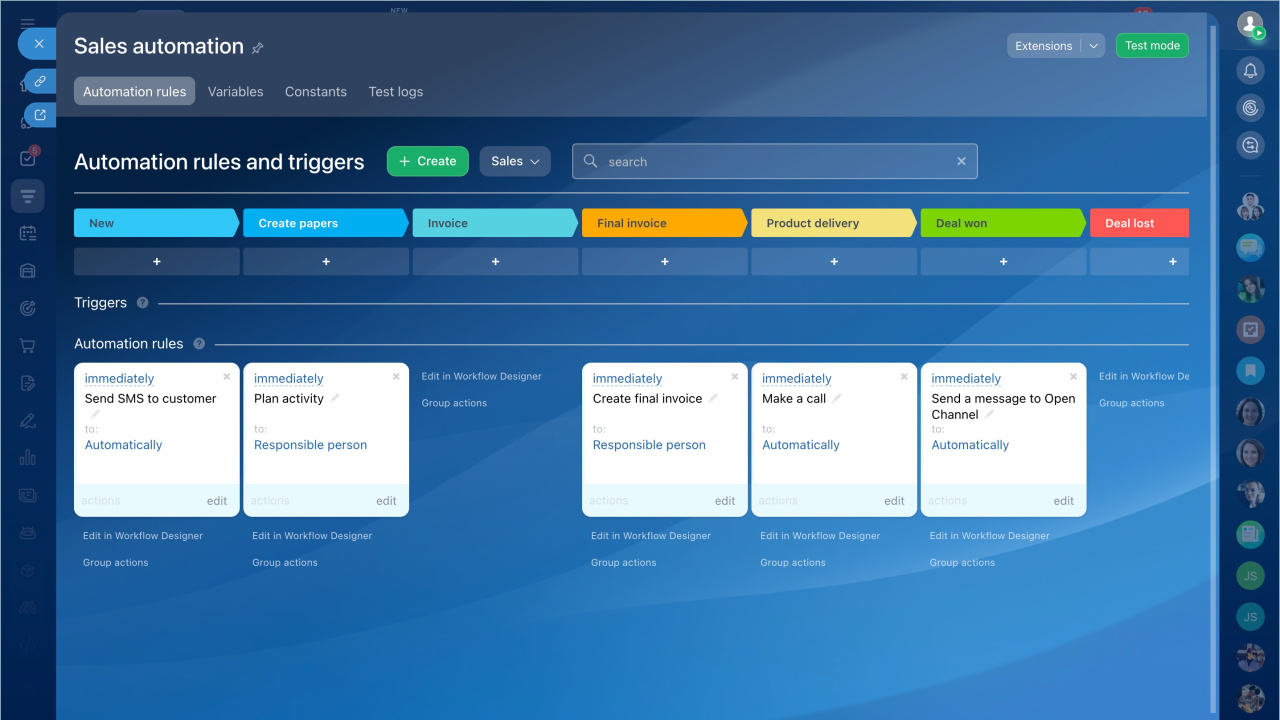 Answers to questions about automation in Bitrix24: how to set up automation rules and workflows, available actions, and what to do if they don’t work as expected.