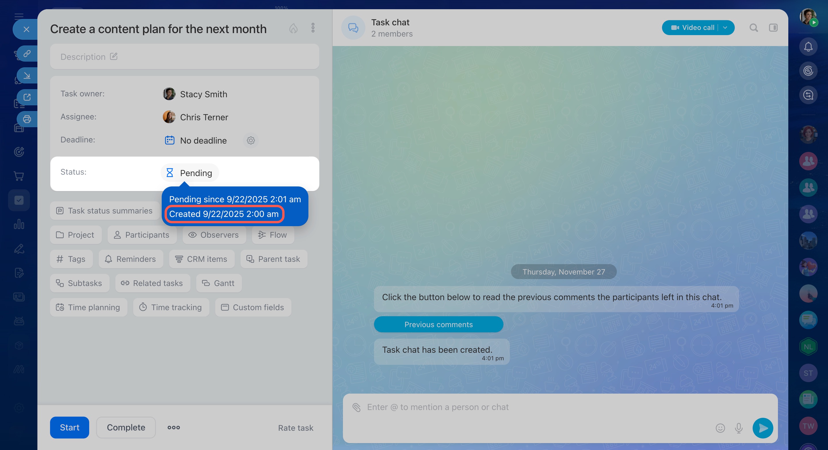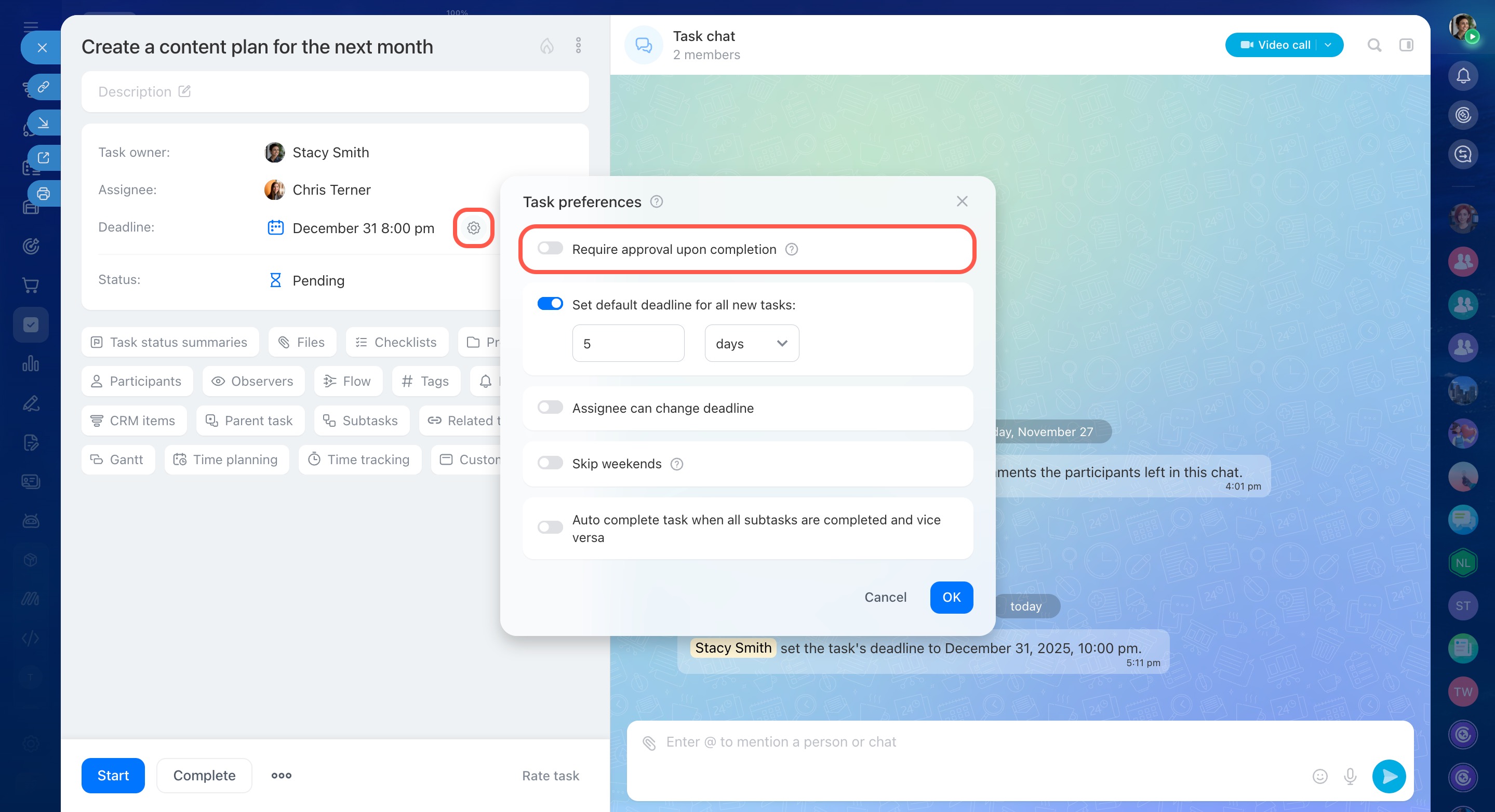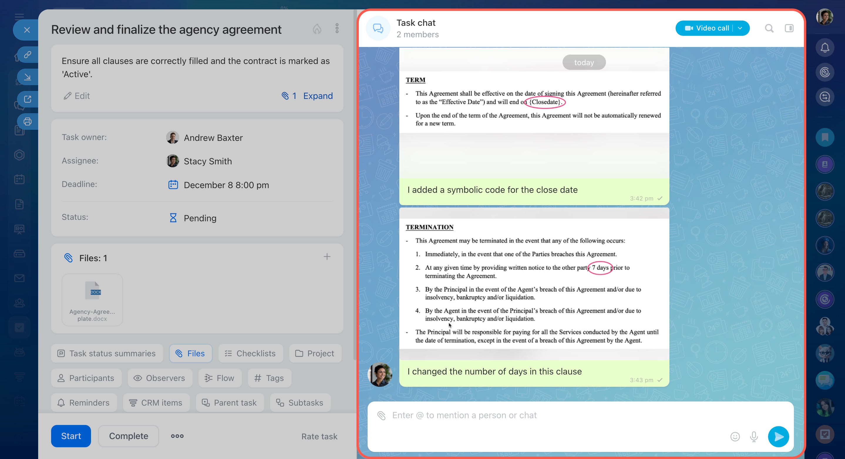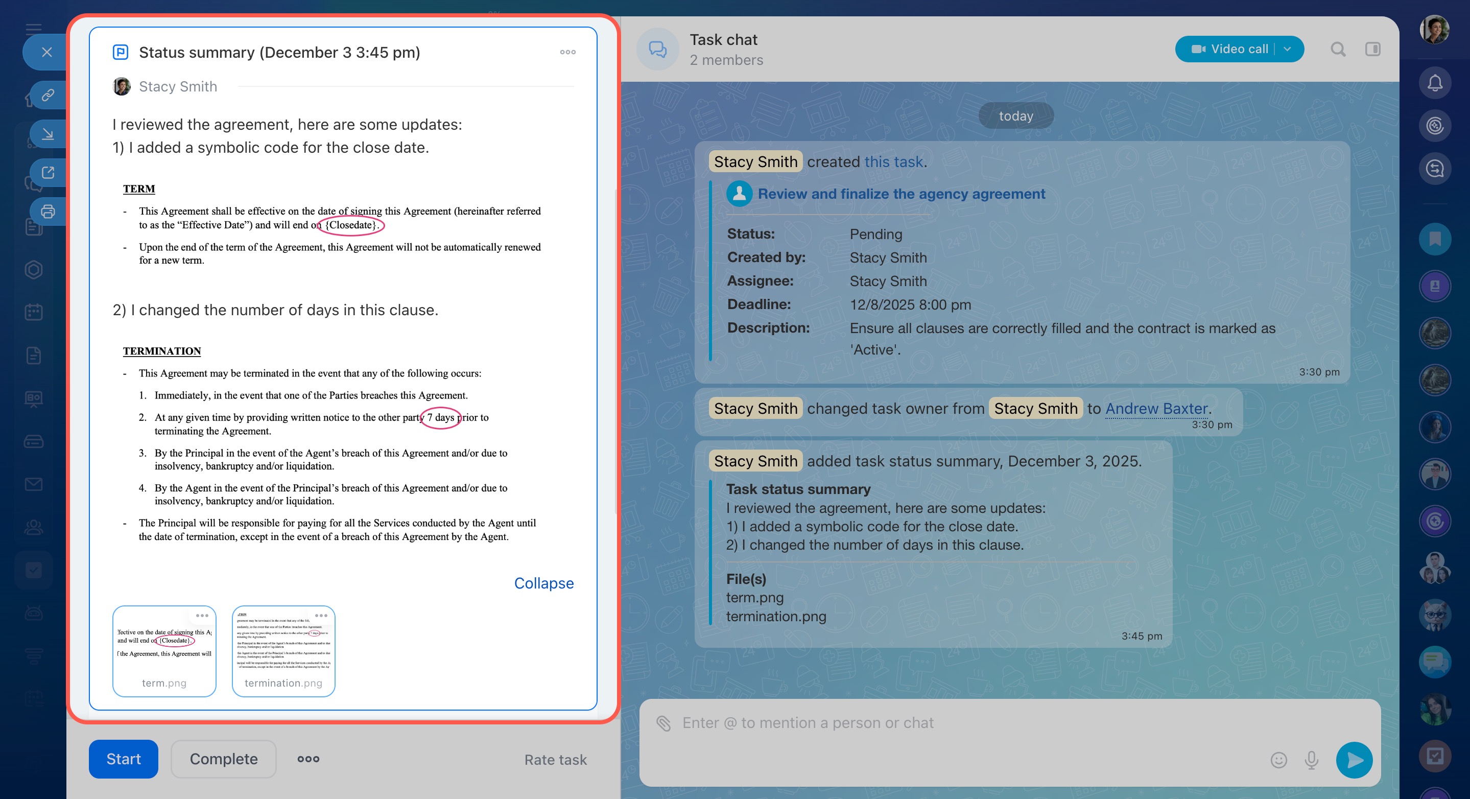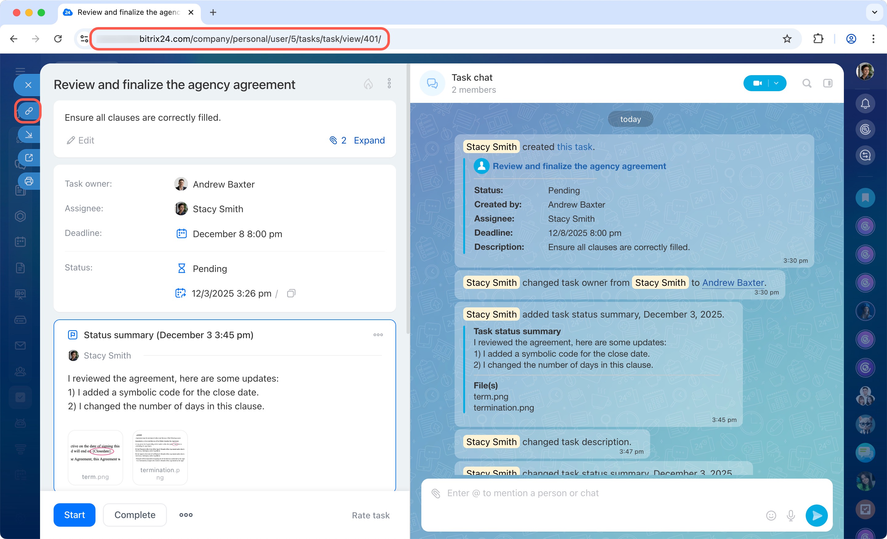New tasks in Bitrix24 are more than just fields and comments. They are a single workspace where everything happens—discussion, action, and results. The task chat is now the central place for communication and process coordination. Your team can make calls, share files, and make decisions without losing context or switching between different tools.
