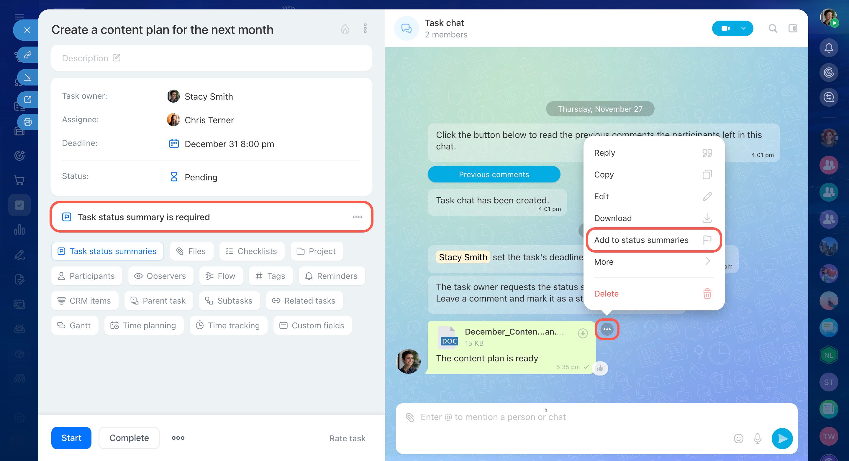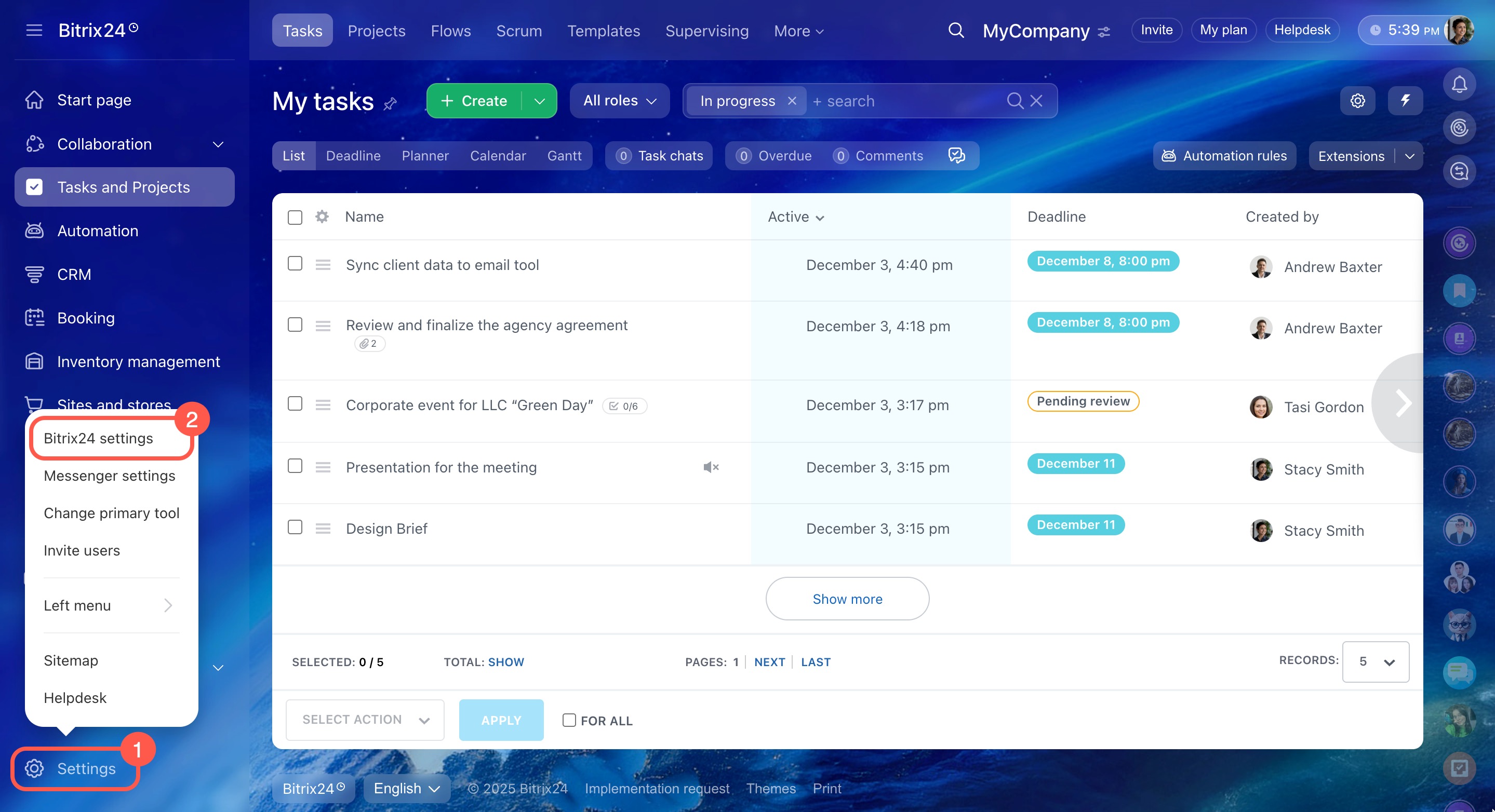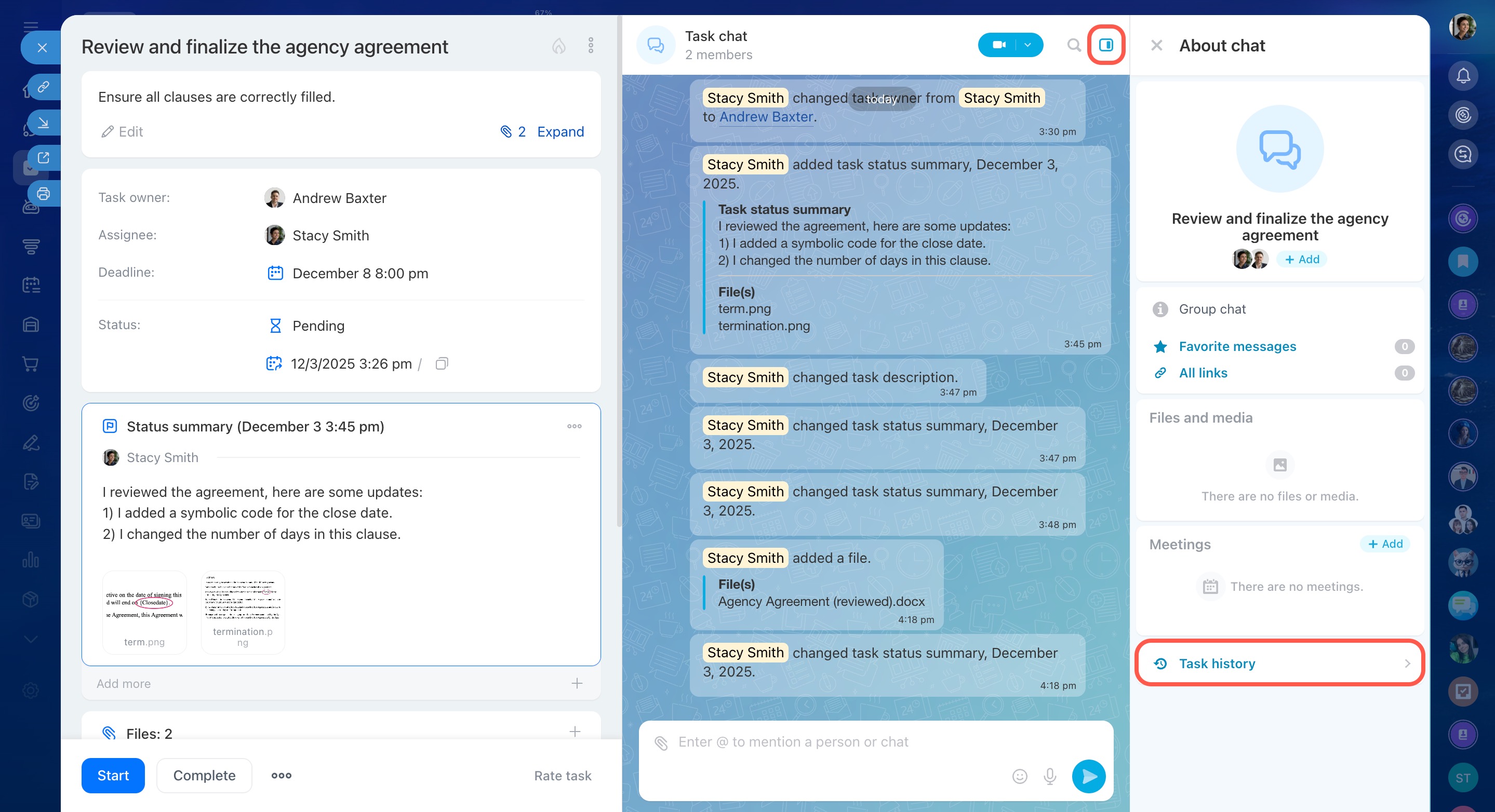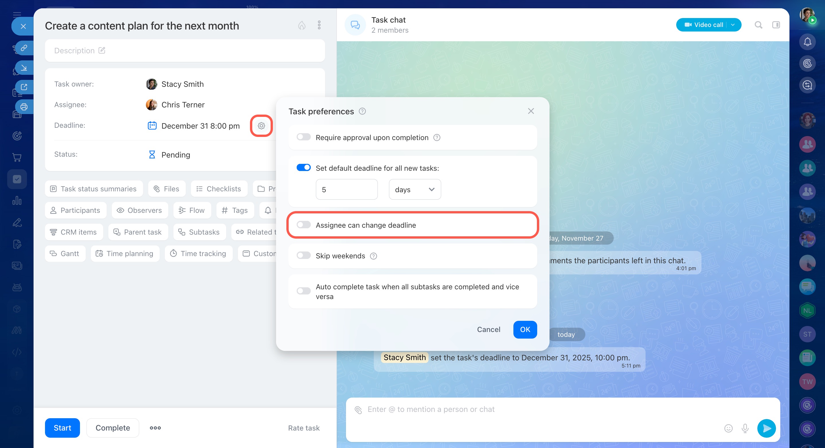 New tasks in Bitrix24 are more than just fields and comments. They are a single workspace where everything happens—discussion, action, and results. The task chat is now the central place for communication and process coordination. Your team can make calls, share files, and make decisions without losing context or switching between different tools.
