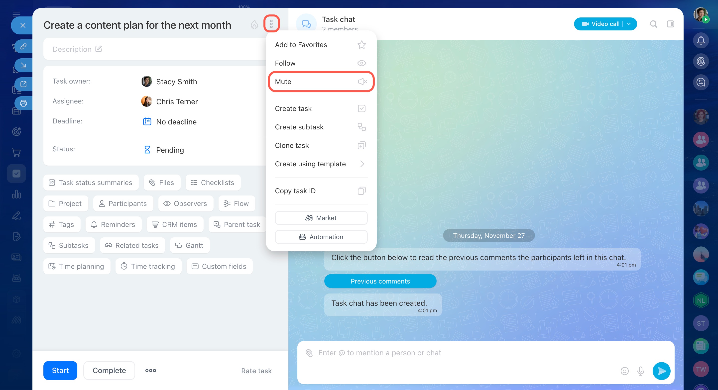 Task chat sounds follow the task’s notifications. If you turn off notifications for a task, its chat will also be muted.