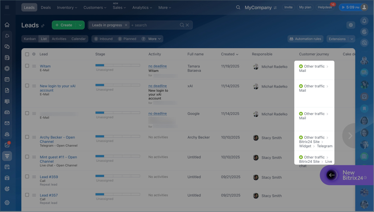 "Other traffic" appears when Bitrix24 cannot identify the source of an inquiry and link the lead or deal to one of the connected Sales Intelligence channels. The inquiry is recorded, but its parameters do not match any source in the settings.