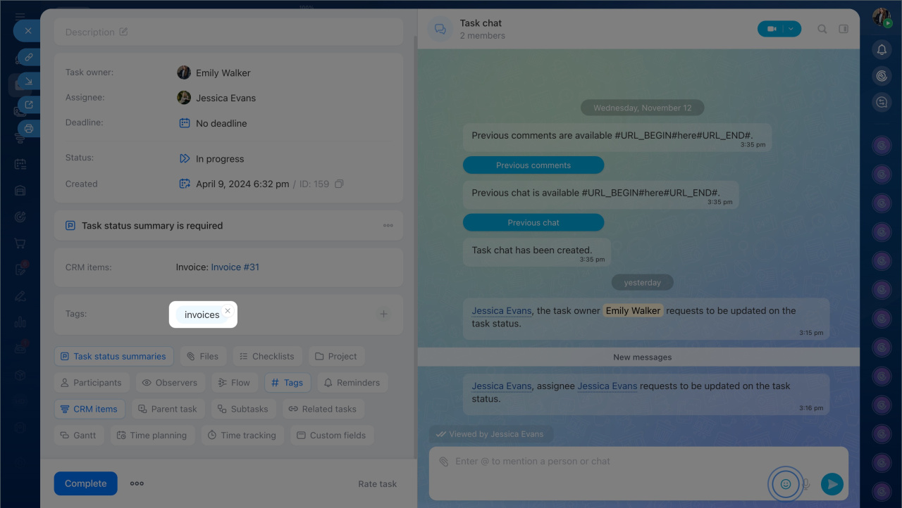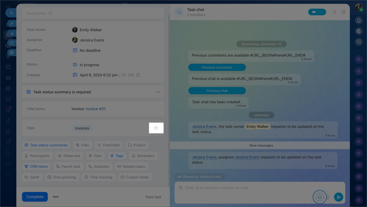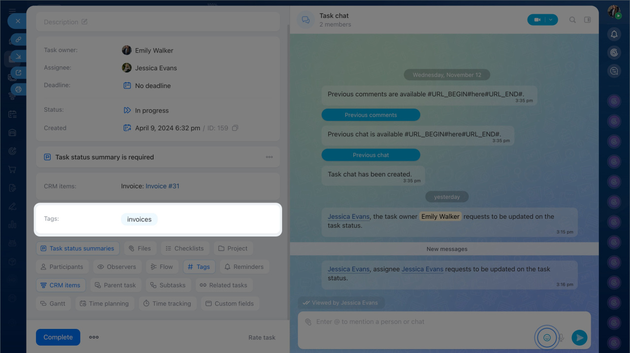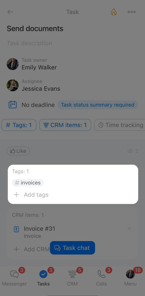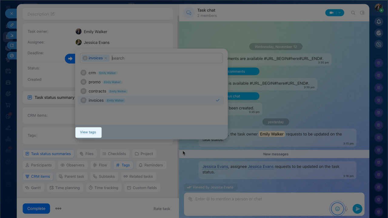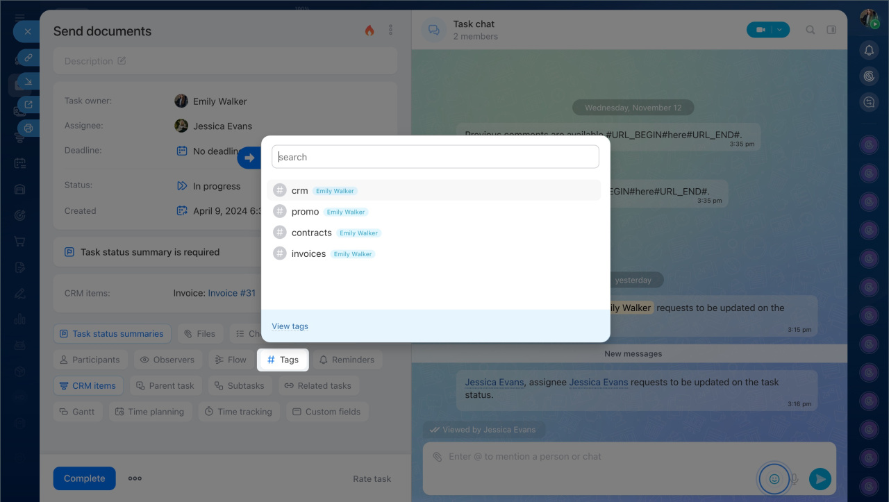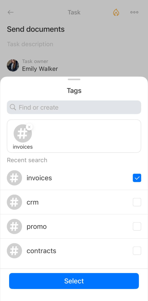 • You can add tags when creating or editing a task in Bitrix24 on both desktop and mobile apps.