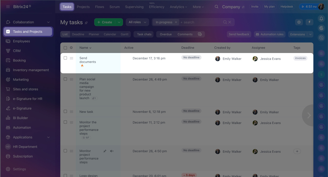 - In Bitrix24, you can track how much time employees spend on specific tasks. All data is automatically saved in the task form.