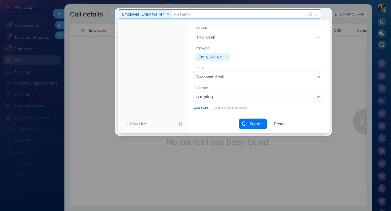 - Call type — specify if you want to view only certain calls, such as outgoing.