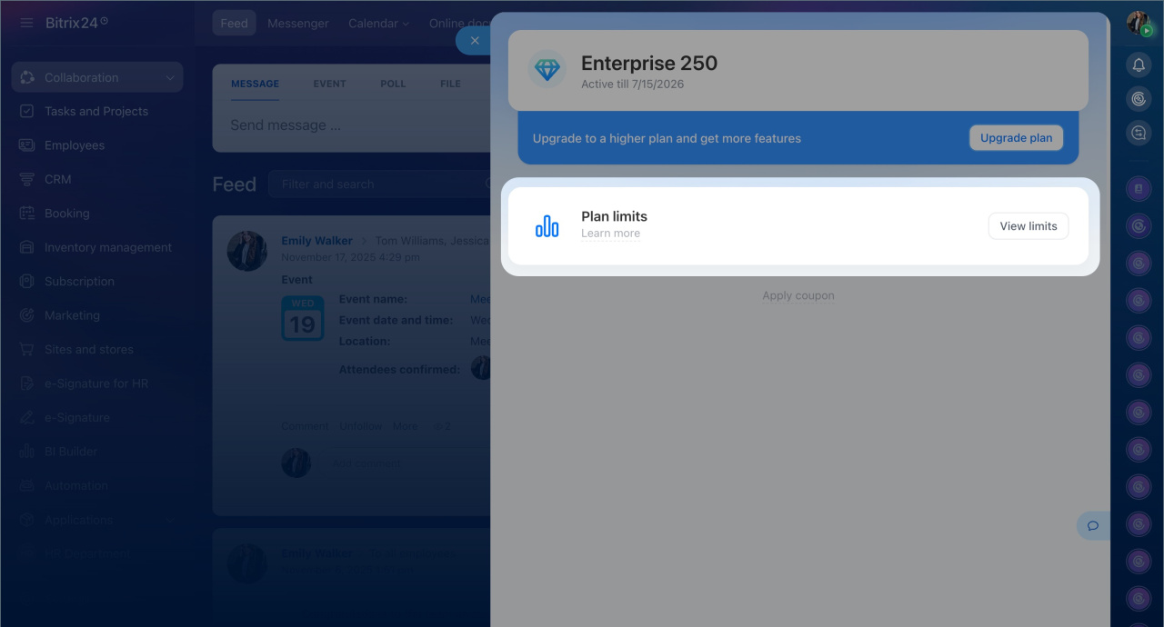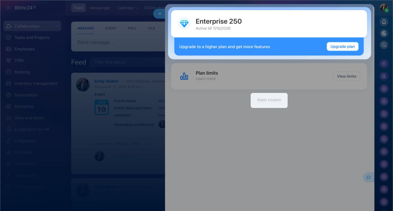 The Subscription section in Bitrix24 has been updated. Here you can: