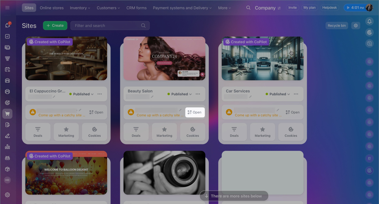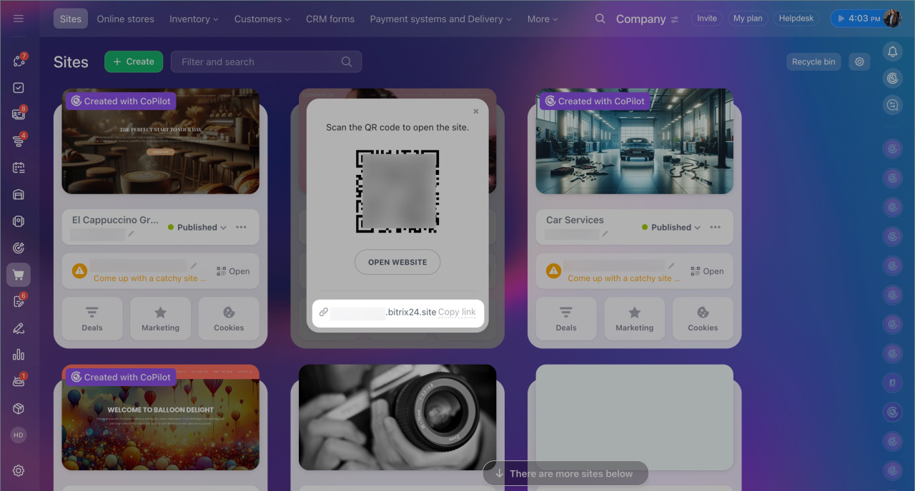 1. Select the desired site and click Open > Copy link.