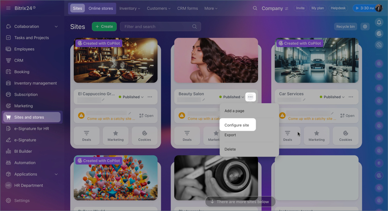 2. Choose the desired site and click Three dots (...) > Configure site or Settings.