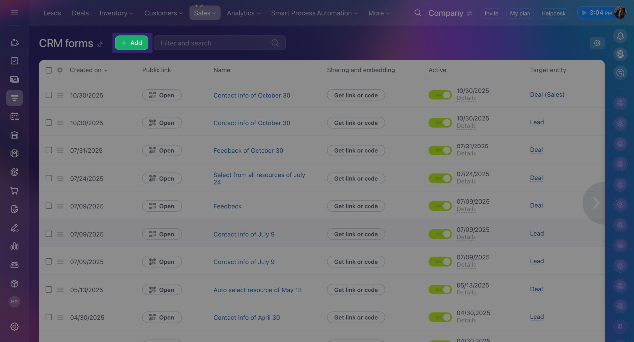 - When customers fill out the form, CRM items are automatically created and assigned to employees specified in the form settings.