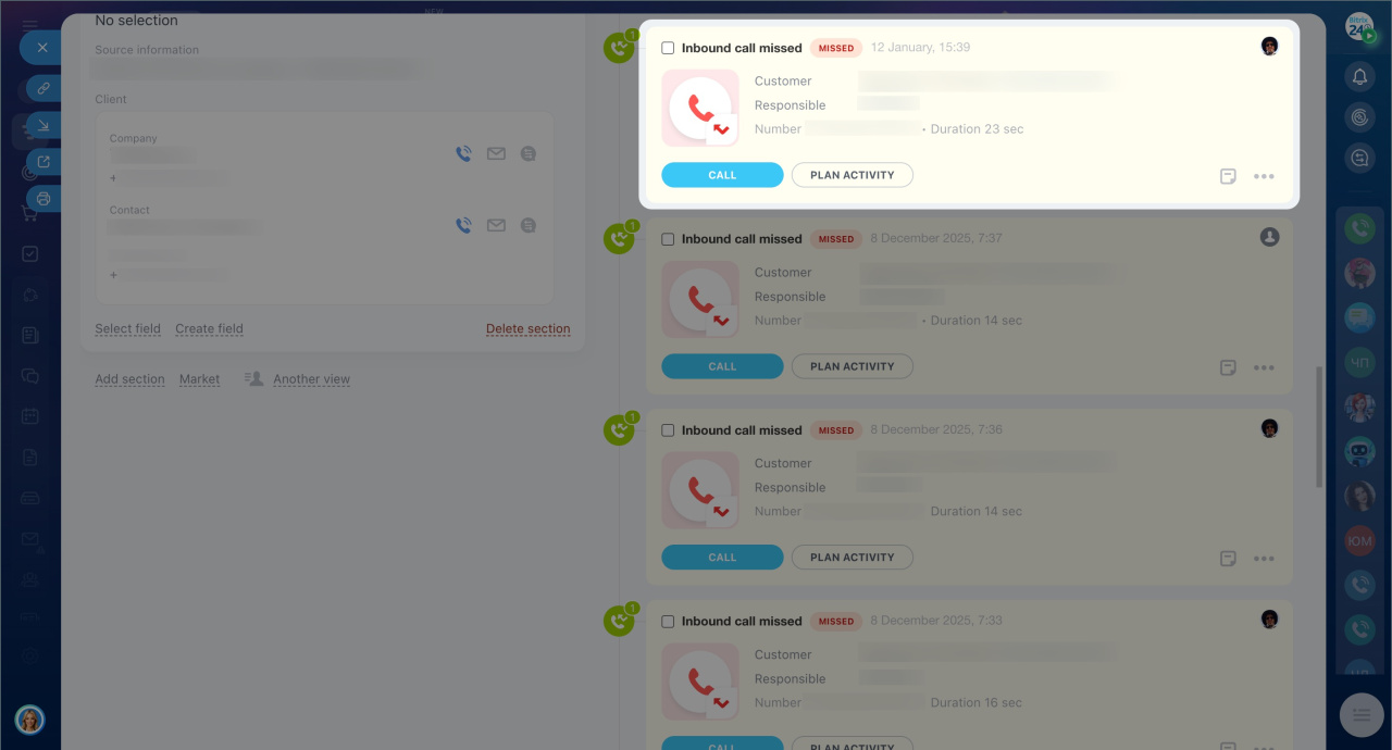 When customers fill out the form, CRM items are automatically created and assigned to employees specified in the form settings. The next steps depend on whether the responsible employee can receive incoming calls.