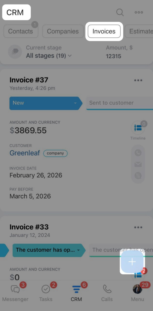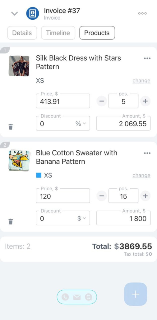 You can create and send an invoice to a customer directly from the CRM. The document is filled out automatically, without manual data entry.