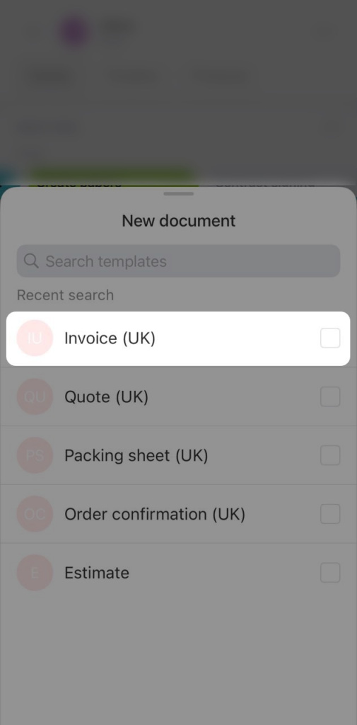 2. Next to the relevant deal, click Three dots (...) > Create from source > Invoice > Continue.