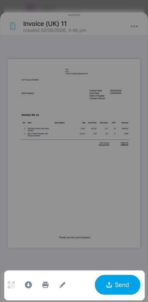 - Via email — if an email account is connected to Bitrix24 and the customer's email is specified. The customer will receive the document in pdf format.