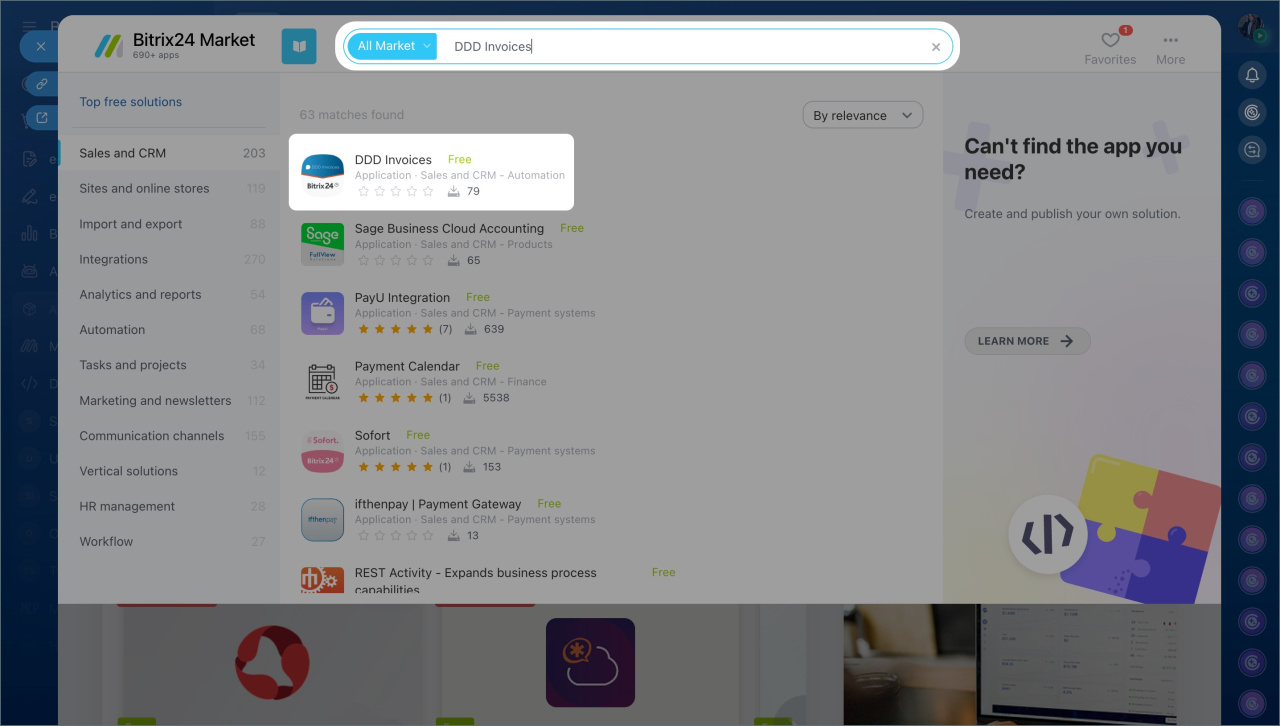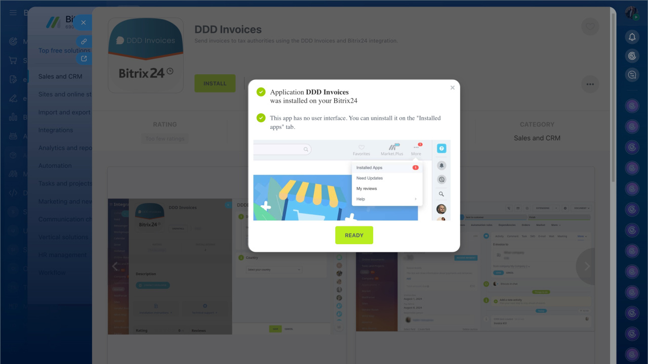 To get started, install the DDD Invoices application from the Bitrix24 Market.