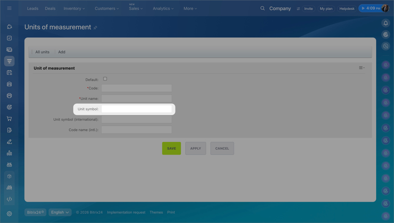 4. Enter the corresponding DDD Invoices UMC code in the Unit symbol field.