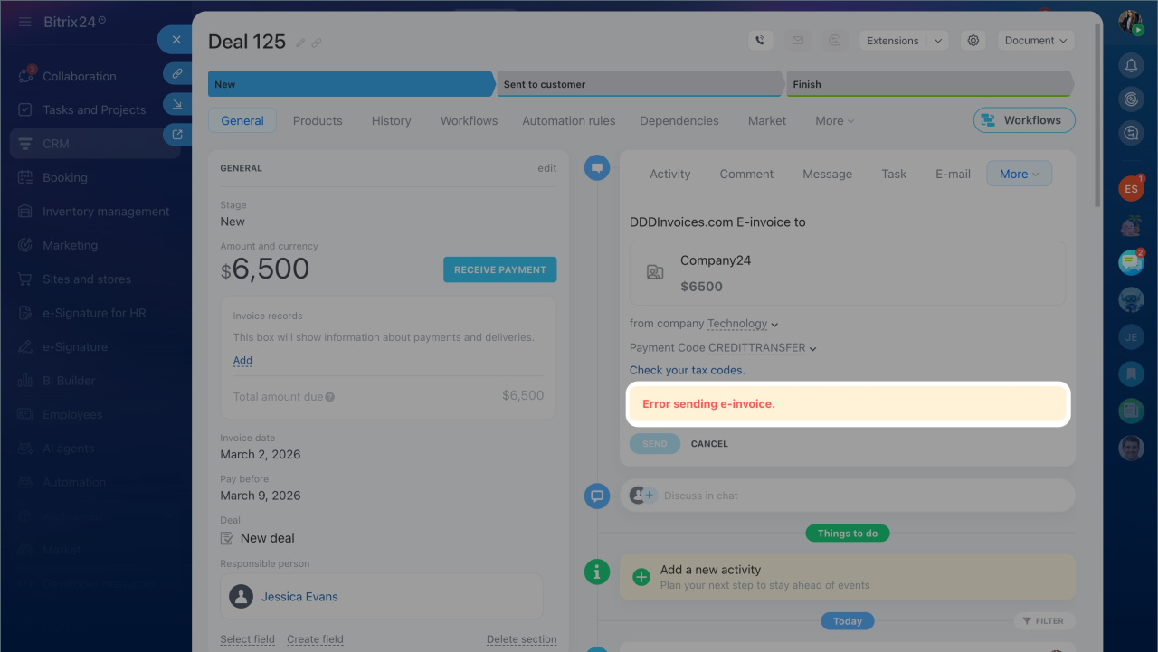 - In Bitrix24, you can send invoices directly to tax authorities using the DDD Invoices integration.