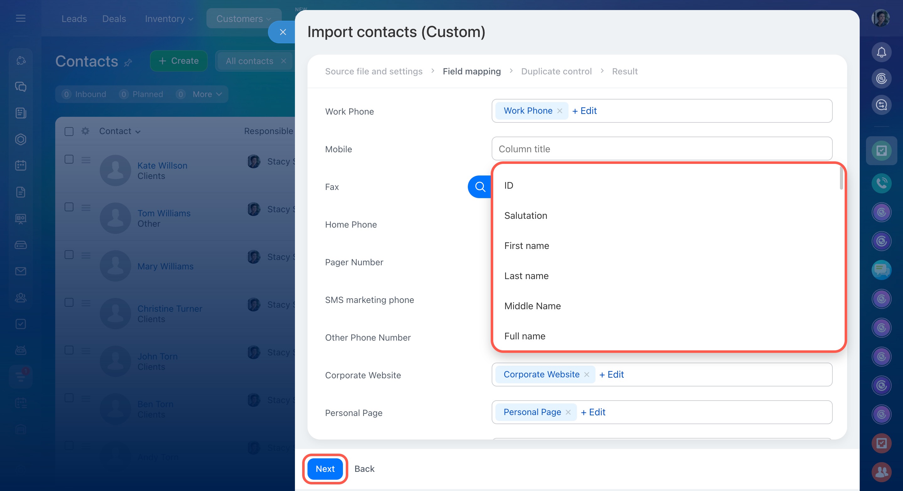 - Skip: duplicates are not imported. Bitrix24 provides a file with the list of duplicates.