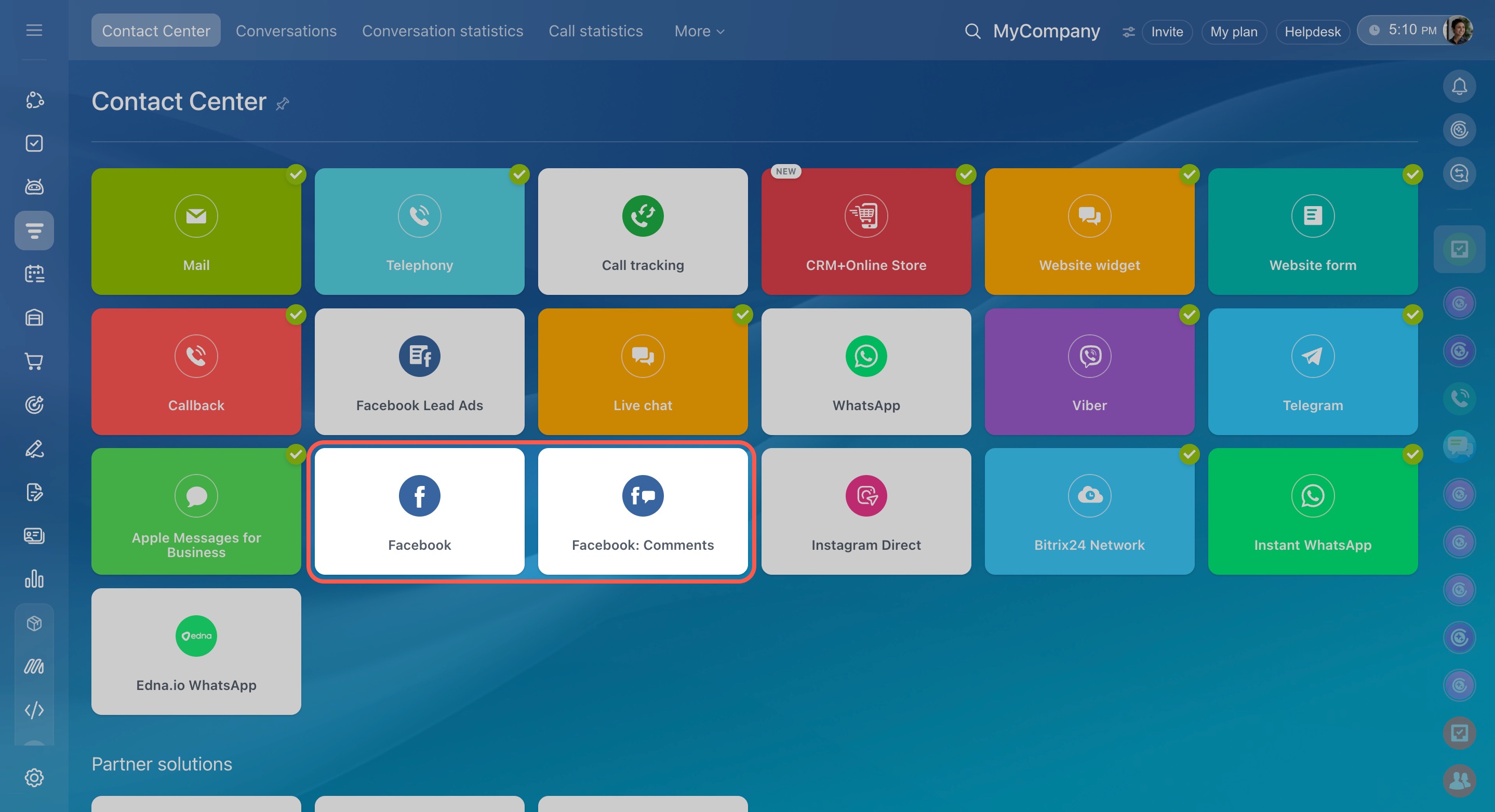 Connect a Facebook Page to Bitrix24 to receive direct messages and post comments.