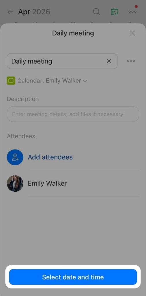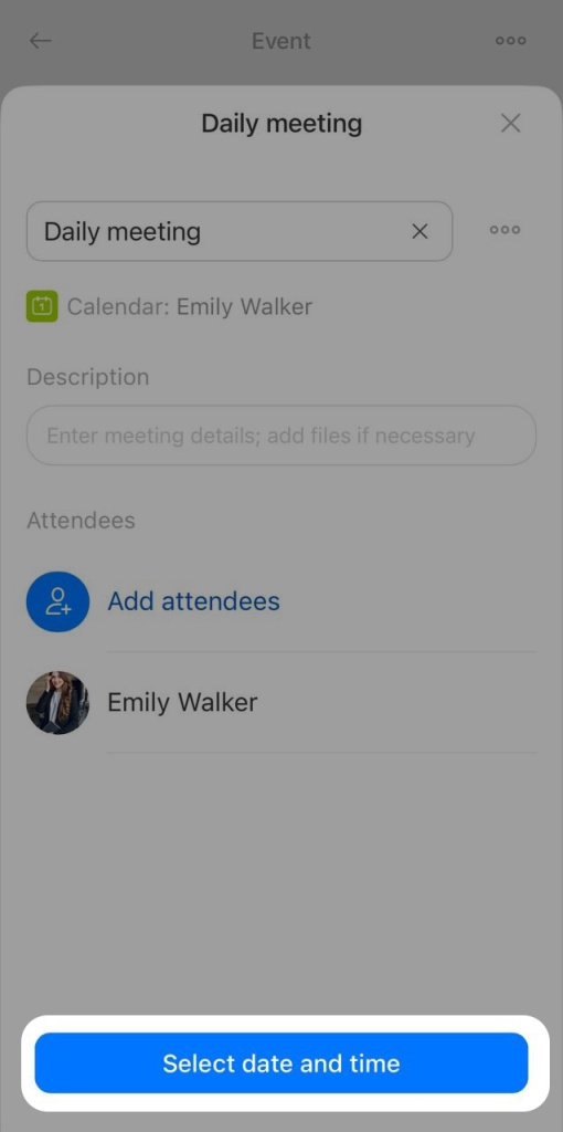 Add attendees so the event appears in their calendars and they get a notification about the meeting.