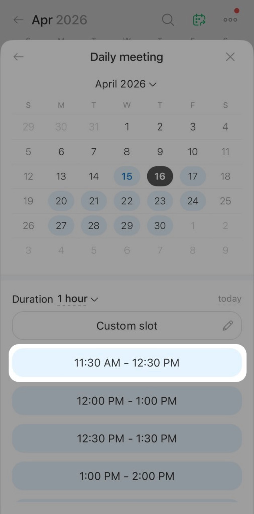 Choose a time and reserve a meeting room