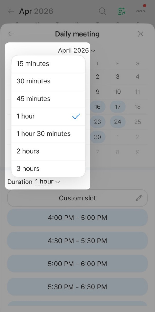 3. Set the duration — tap the current value next to Duration and choose an option from the list.